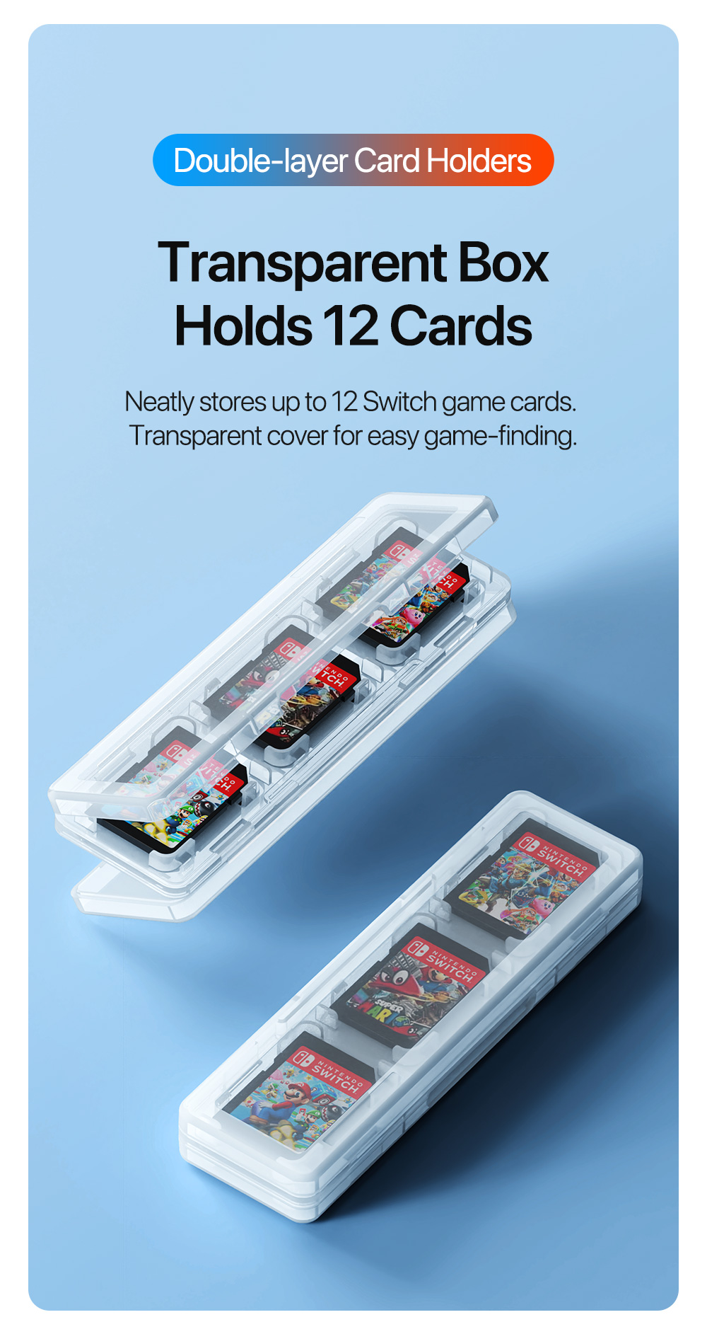Compact Storage – Double-layer transparent card holder for 12 game cards, easy access.