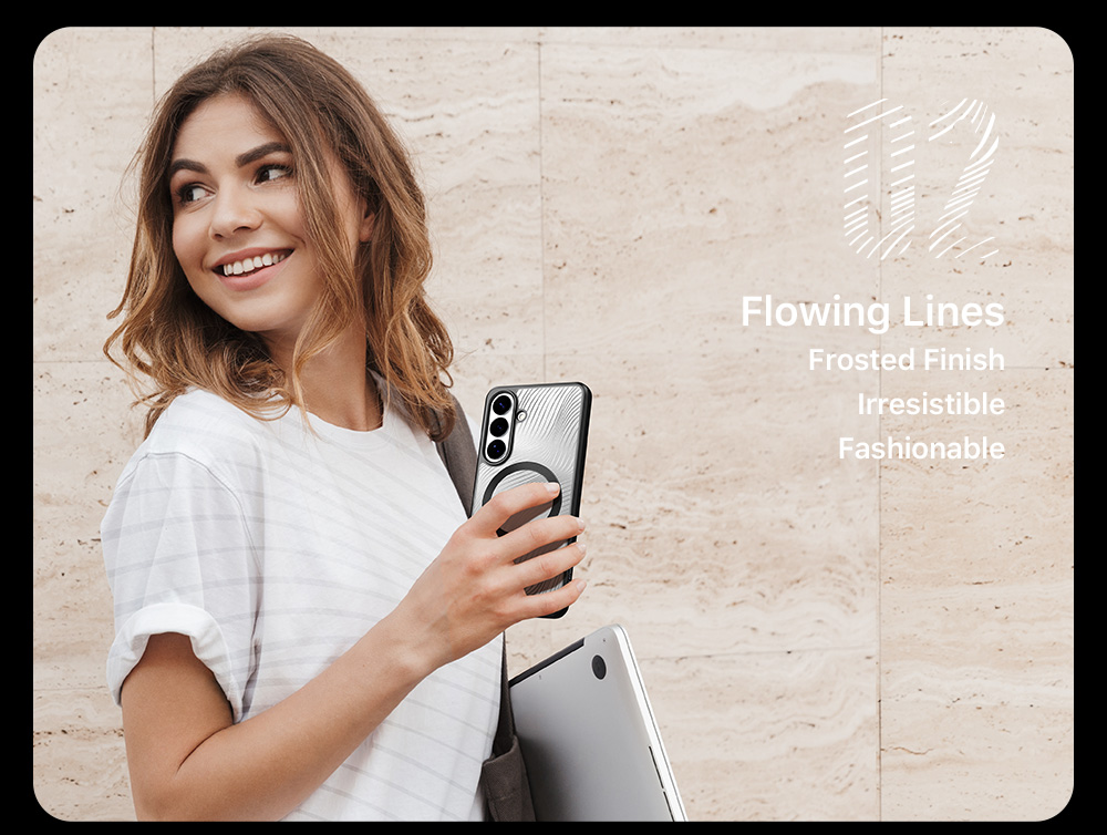 Flowing lines on the backplane with frosted finish look very fashionable, making this phone case alluring.