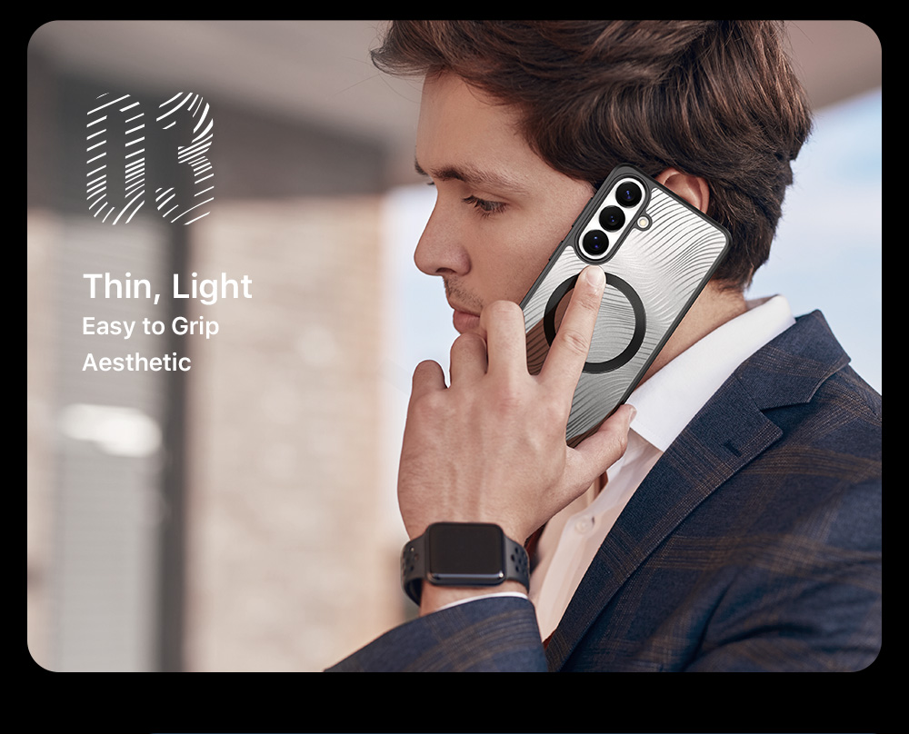 This crystal clear case with MagSafe for Samsung S26 perfectly supports wireless charging.
