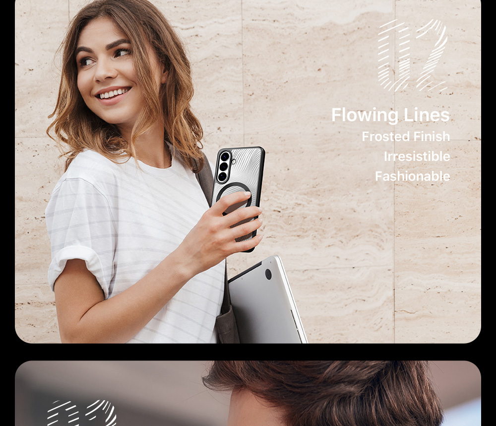 Flowing lines on the backplane with frosted finish look very fashionable, making this phone case alluring.