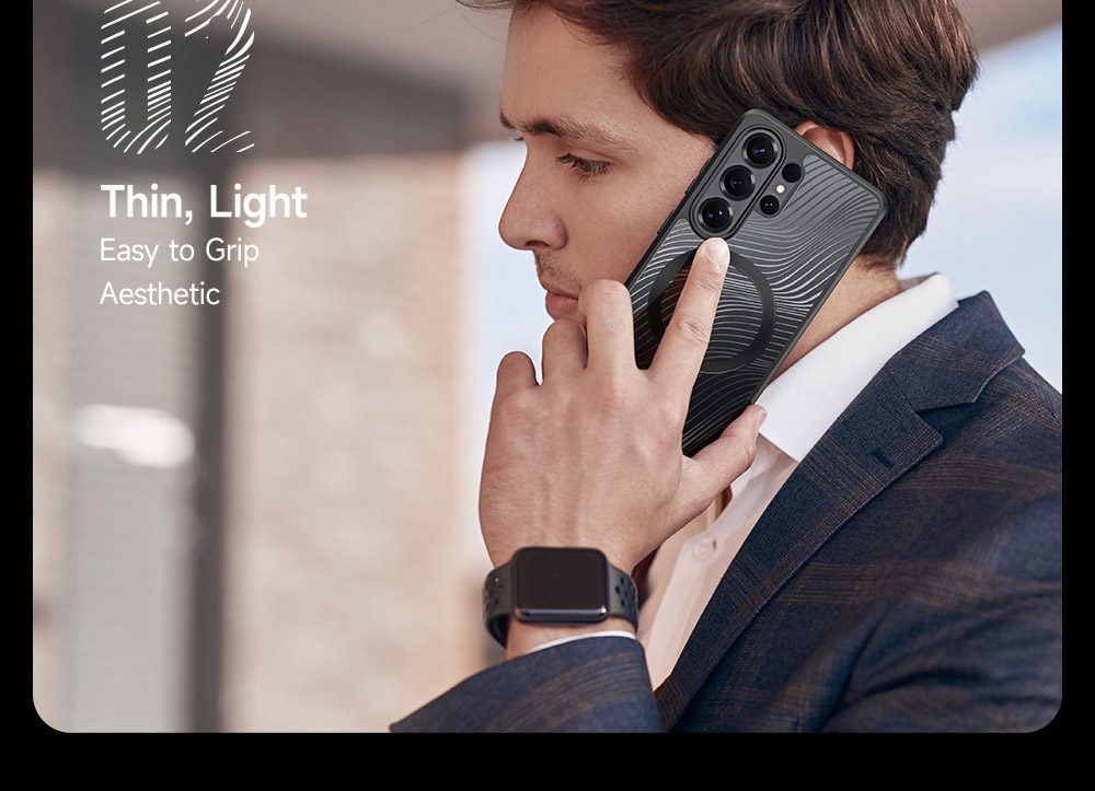 Flowing lines on the backplane with frosted finish look very fashionable, making this phone case alluring.