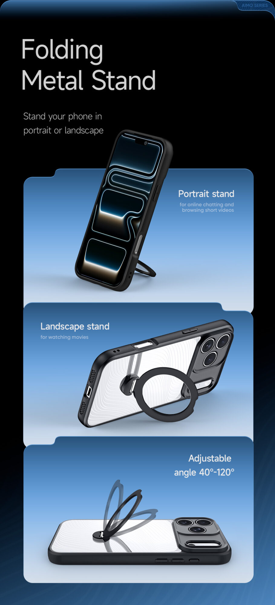 Aimo Mag Series MagSafe Back Cover with Folding Stand for iPhone 17 Pro
