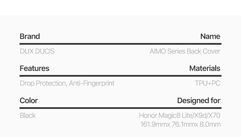 Aimo Series Back Cover for Honor Magic8 Lite / X9d / X7