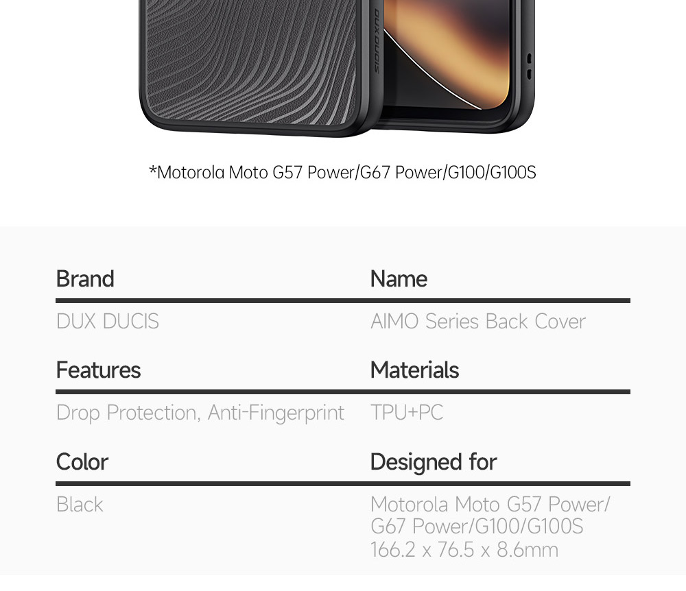 Aimo Series Back Cover for Motorola G57 Power / G67 Power / G100 / G100S