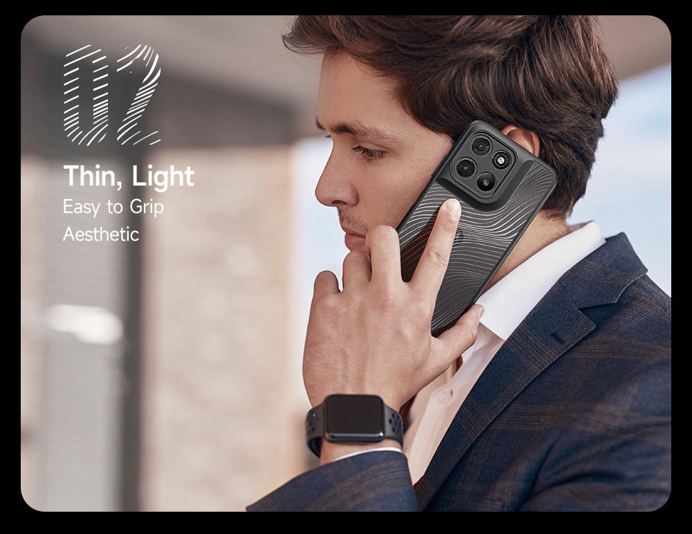 Flowing lines on the backplane with frosted finish look very fashionable, making this phone case alluring.