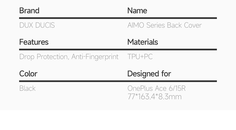 Aimo Series Back Cover for OnePlus Ace 6 / 15R