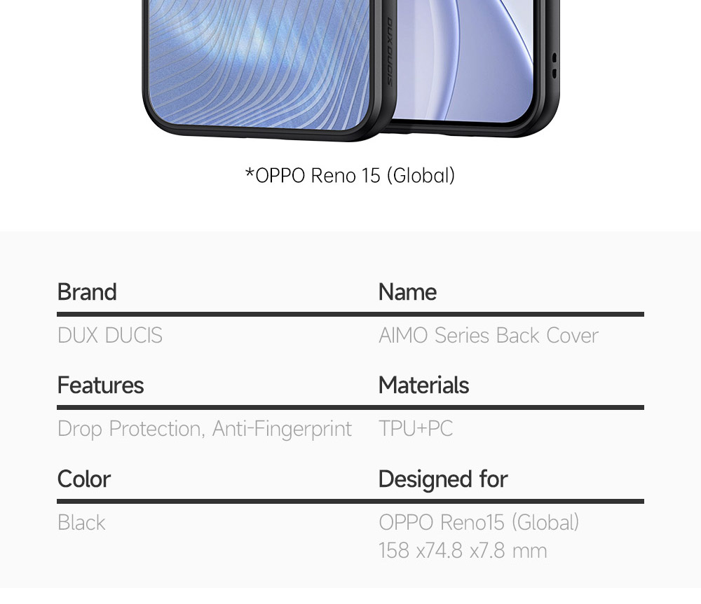 Previous: AIMO Series Back Cover for OPPO Reno15 F