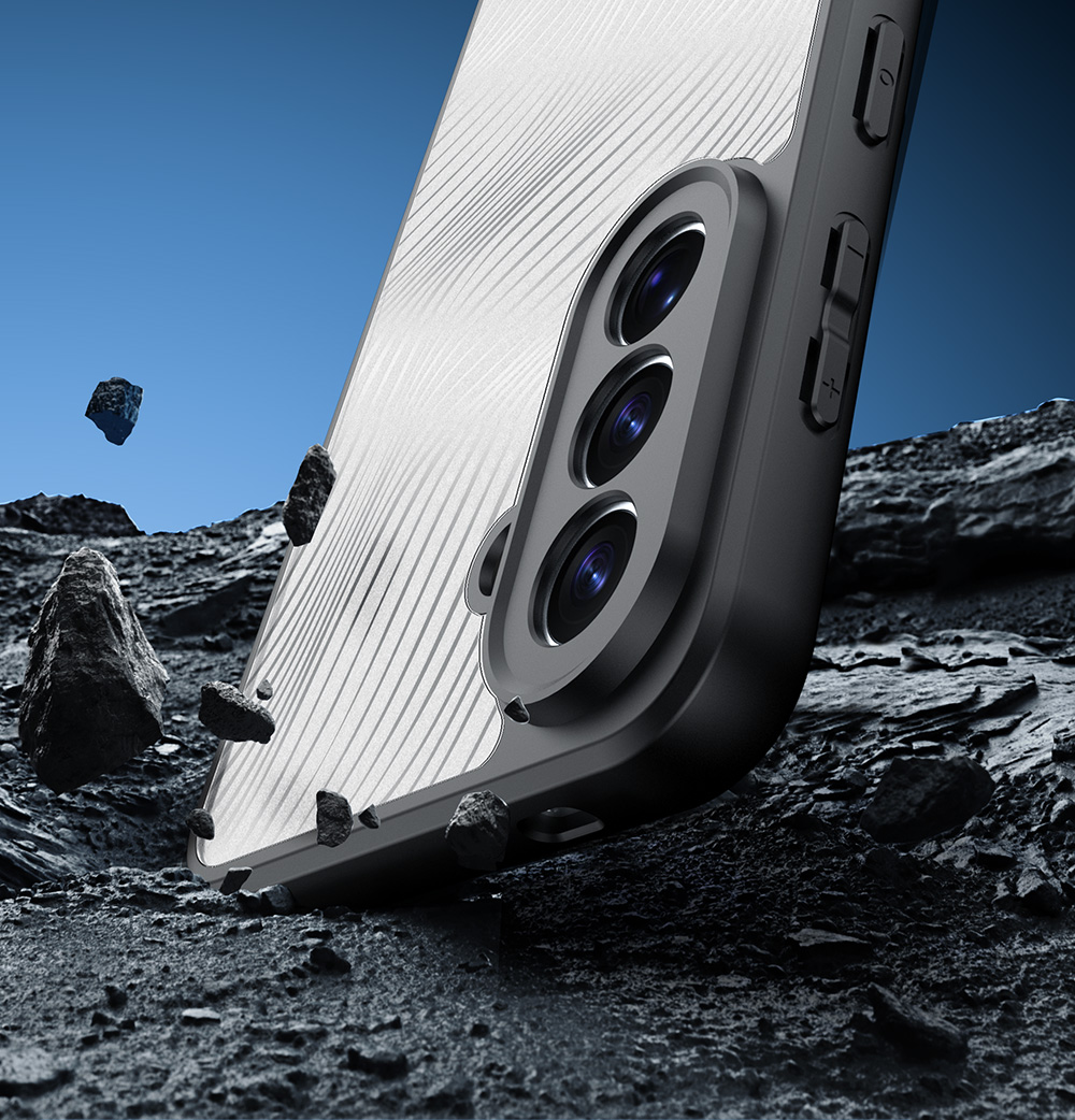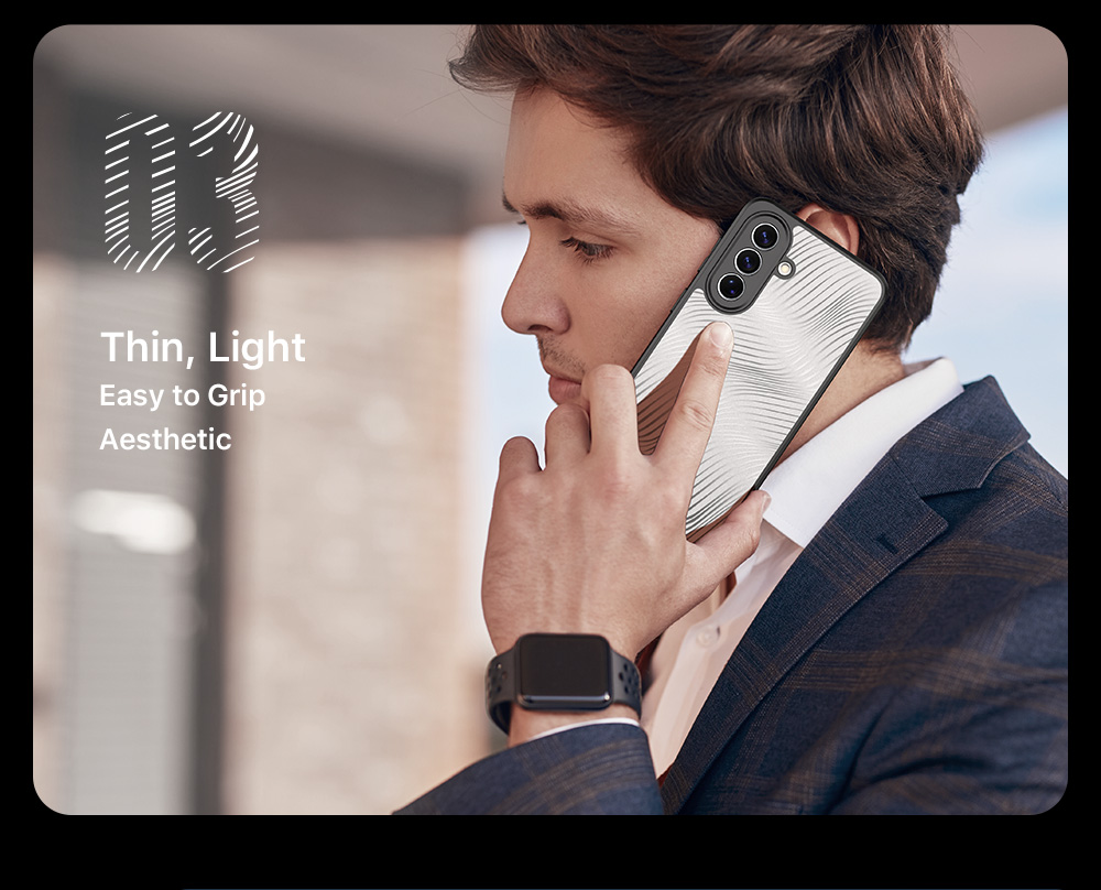 Flowing lines on the backplane with frosted finish look very fashionable, making this phone case alluring.