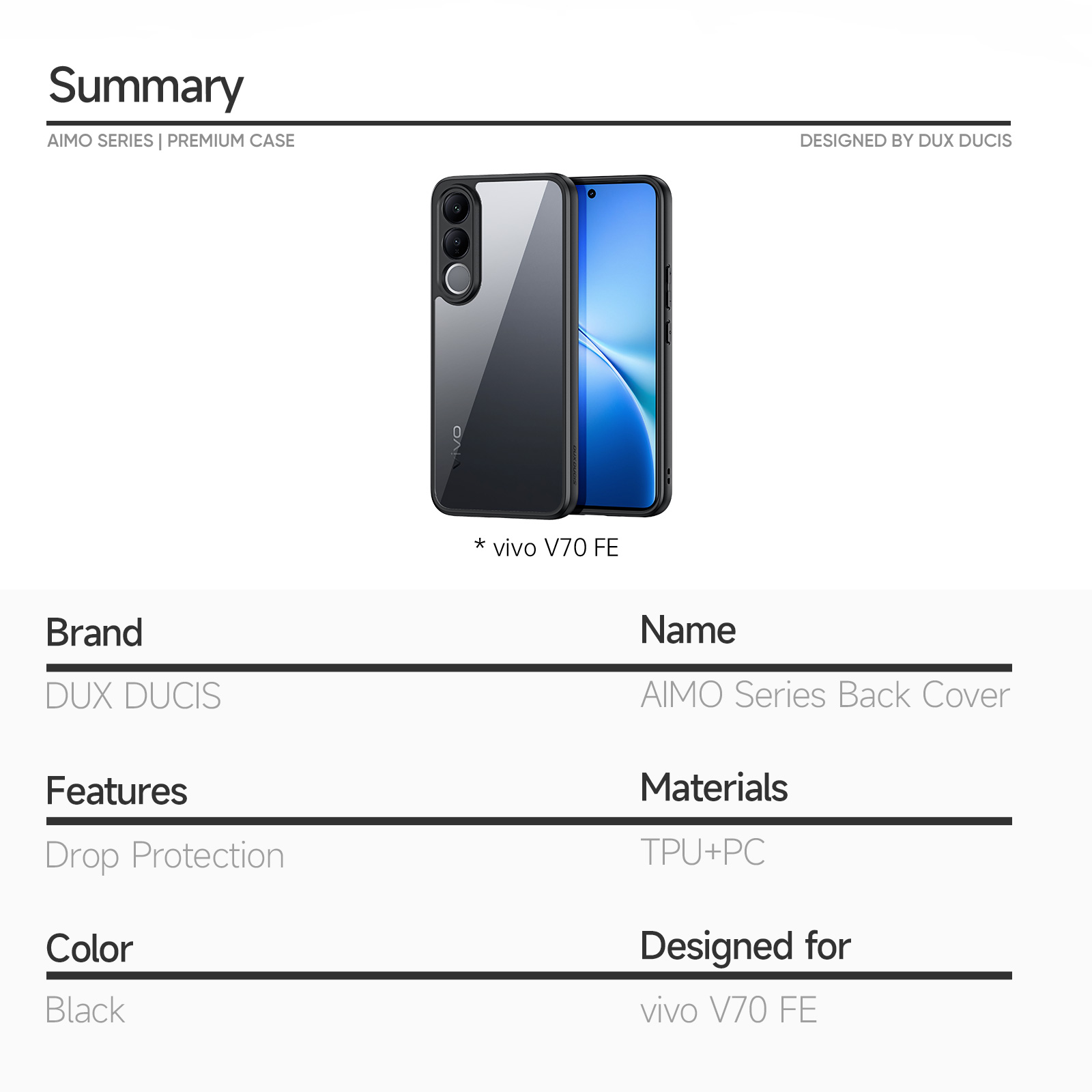 Aimo Series Back Cover for vivo V70 FE