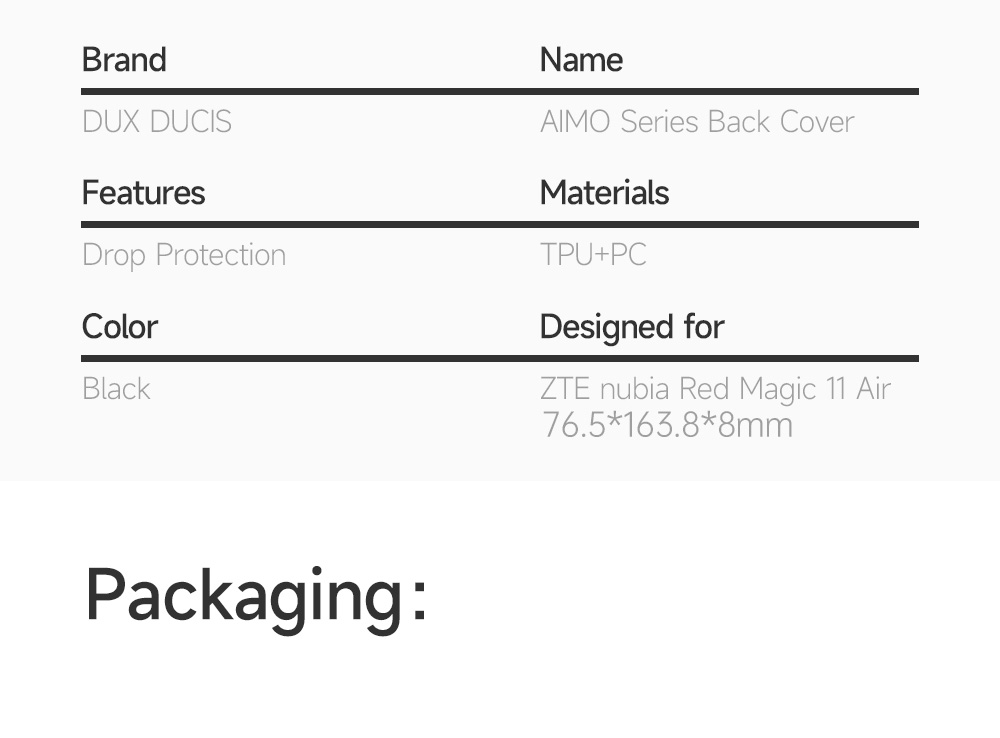 Aimo Series Back Cover for ZTE nubia Red Magic 11 Air