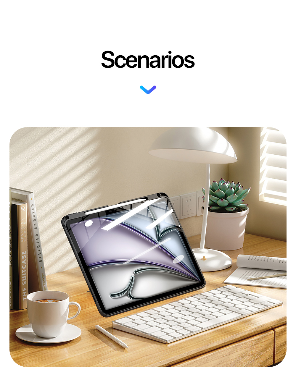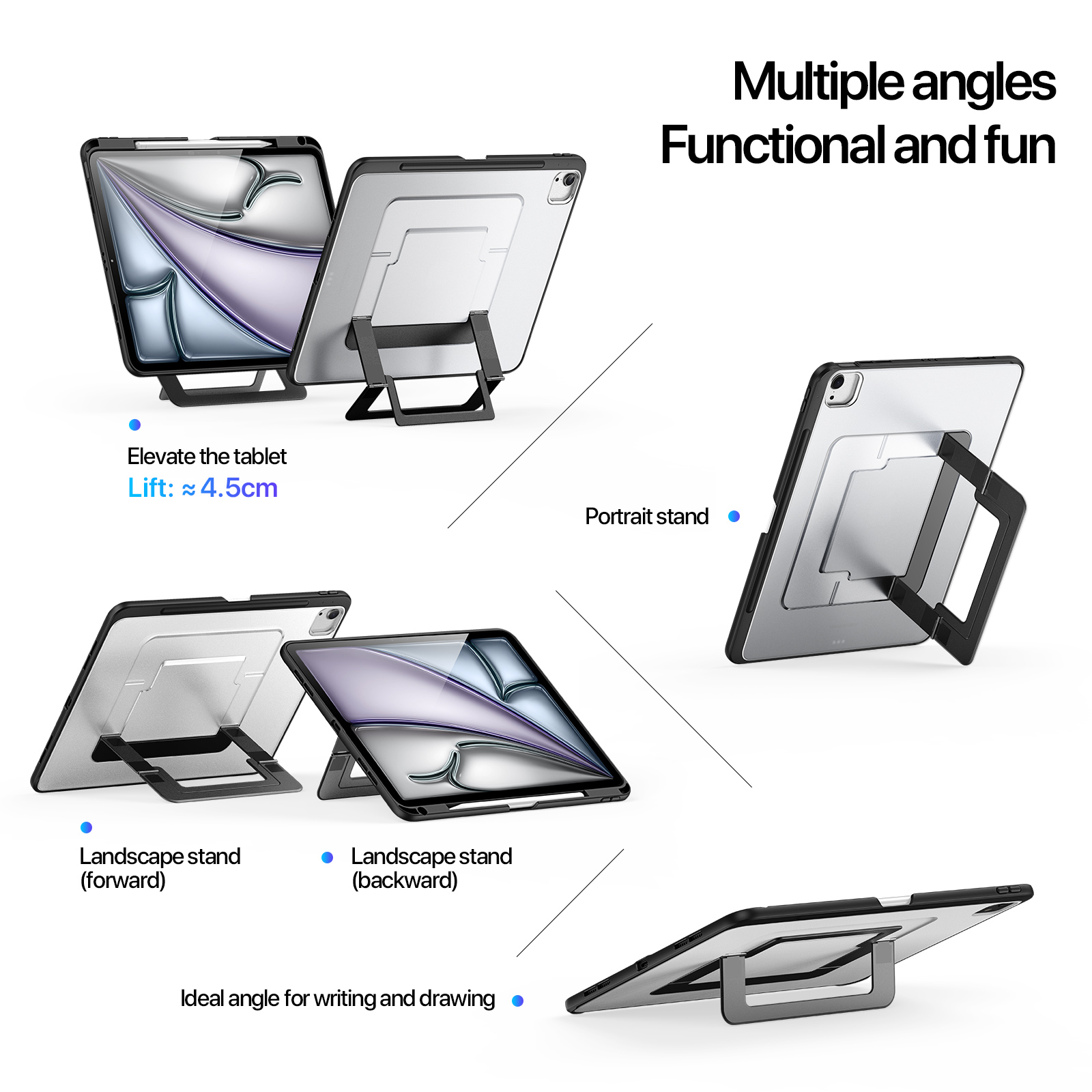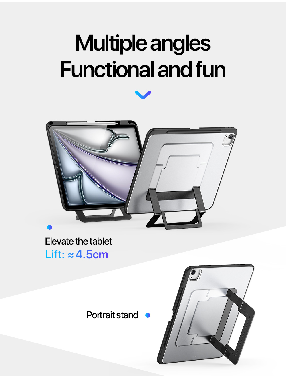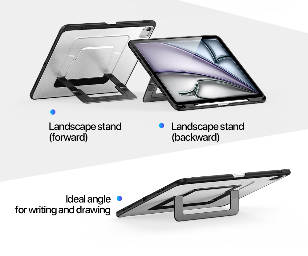 2. Multi-angle stand function supporting portrait, landscape, and 25° writing mode.