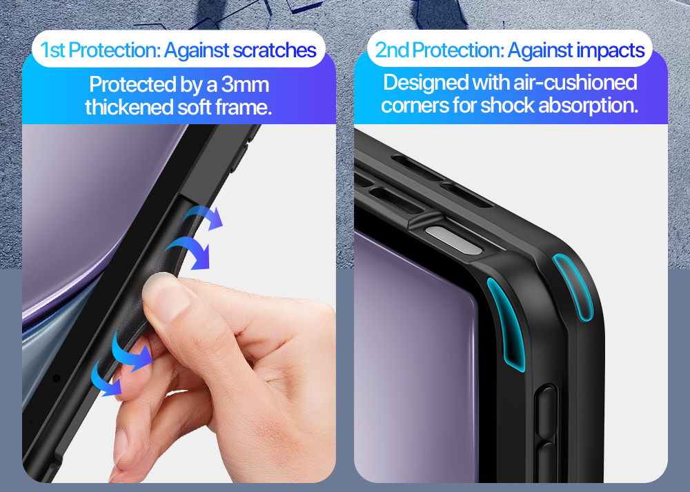 4. Air-cushioned corners and scratch-resistant materials provide all-round drop protection.