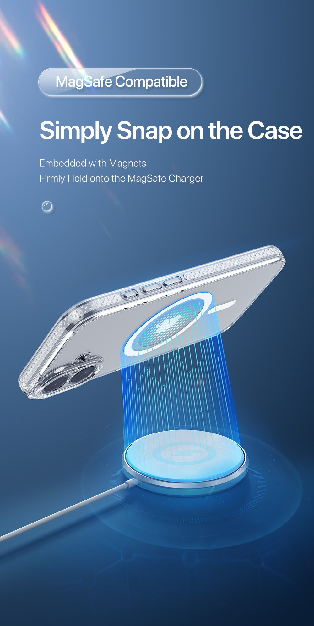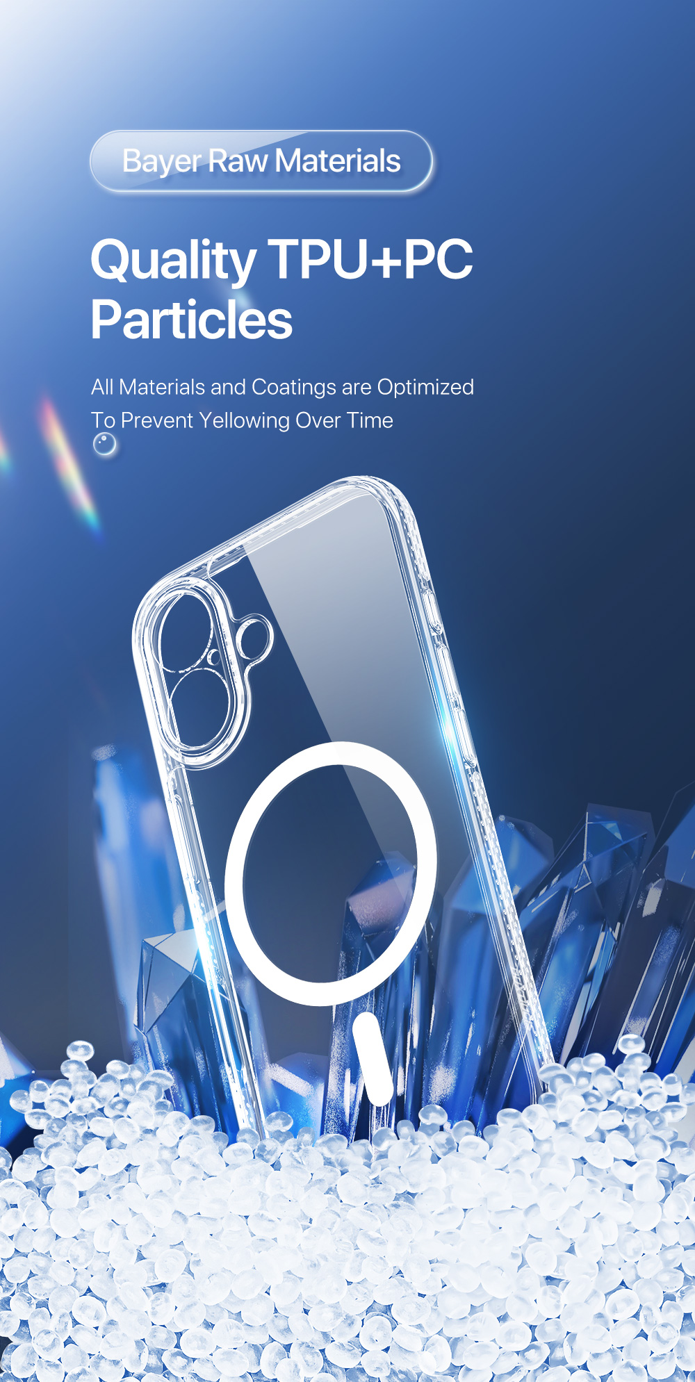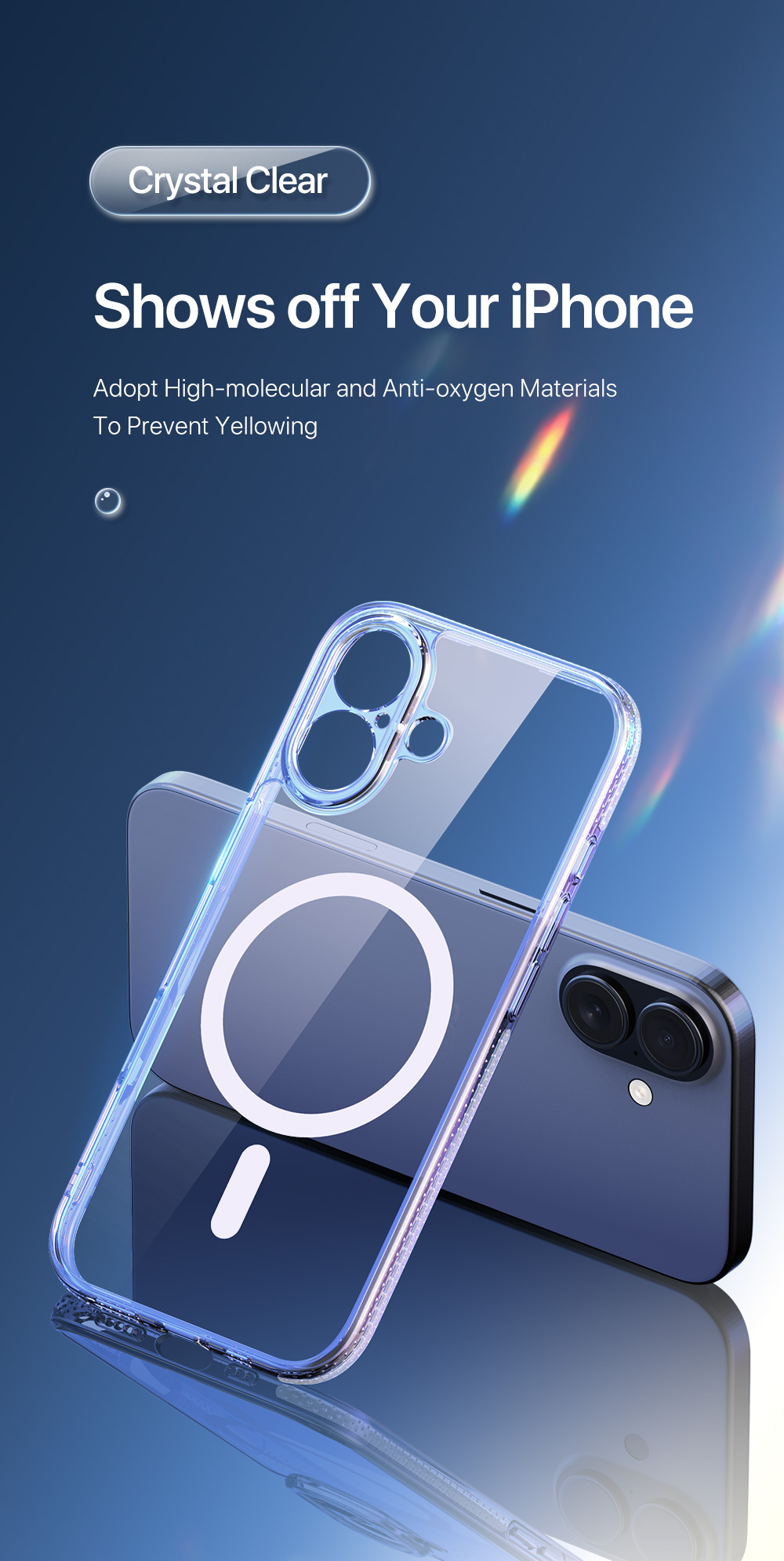 This crystal clear case with MagSafe for iPhone all materials are optimized to prevent yellowing over time.