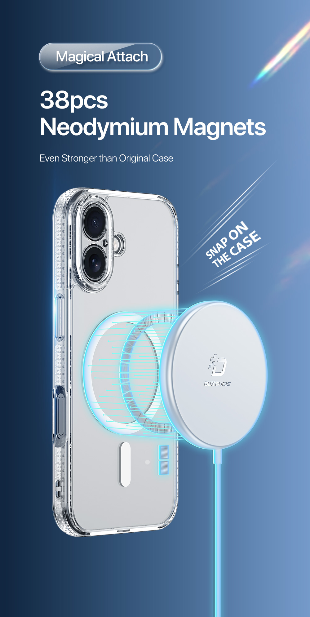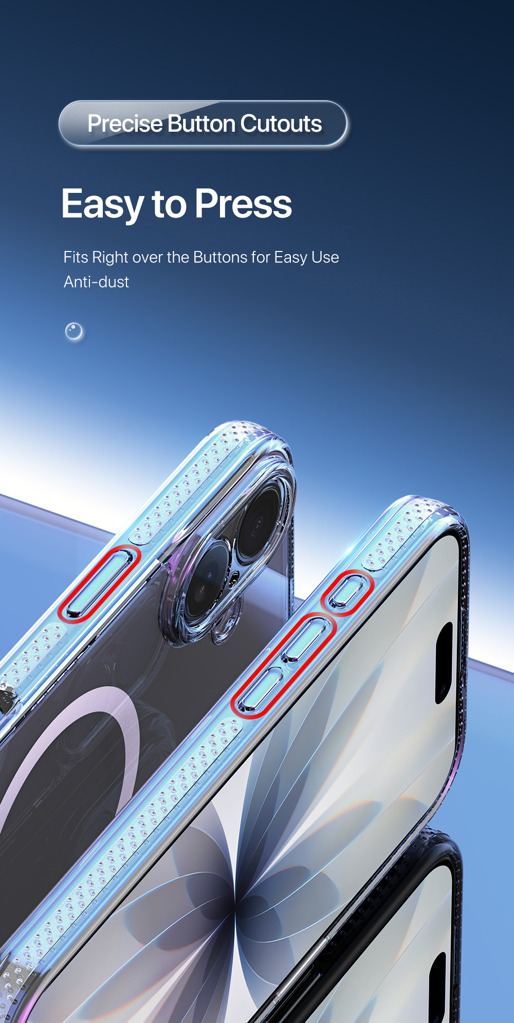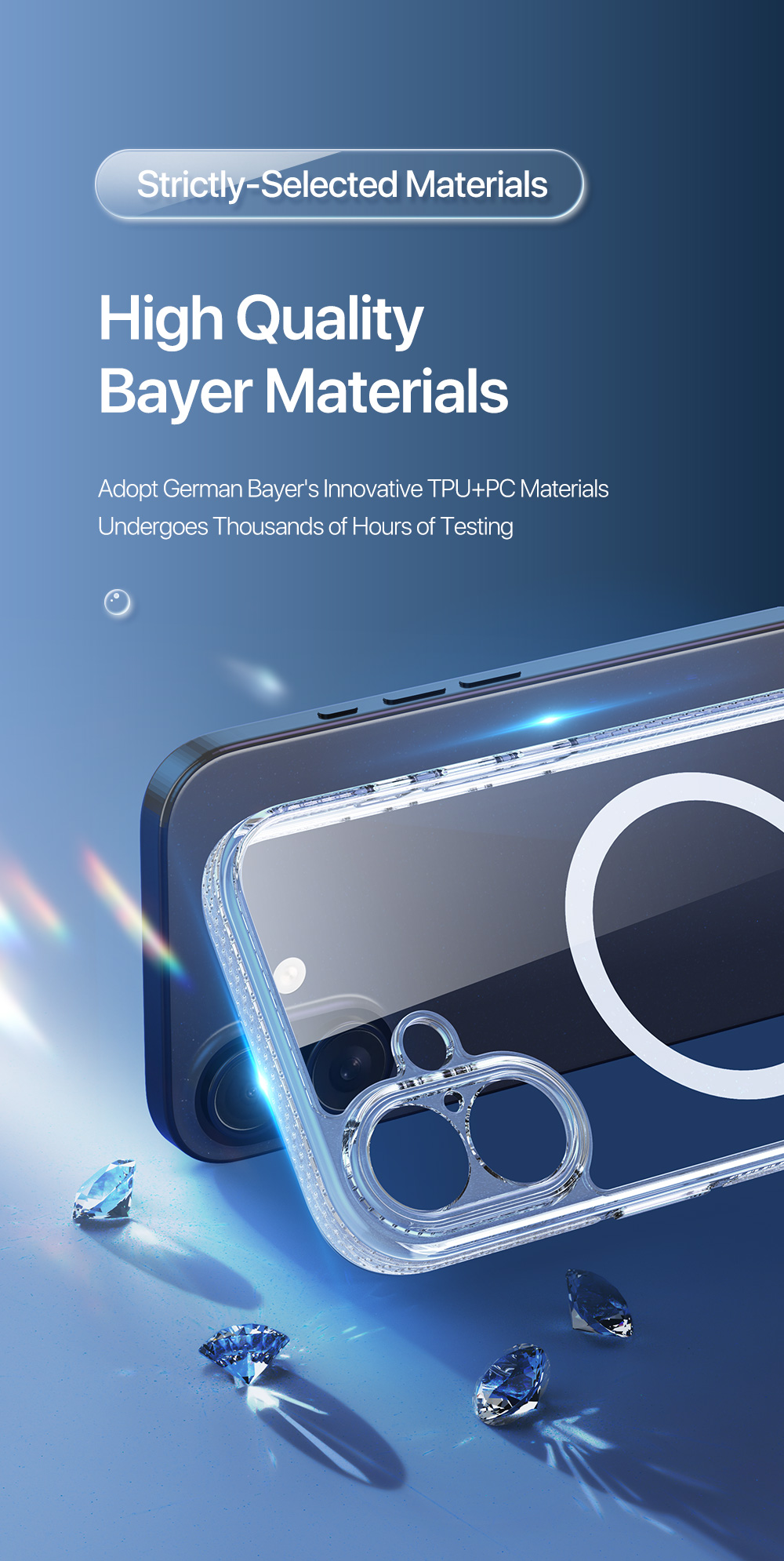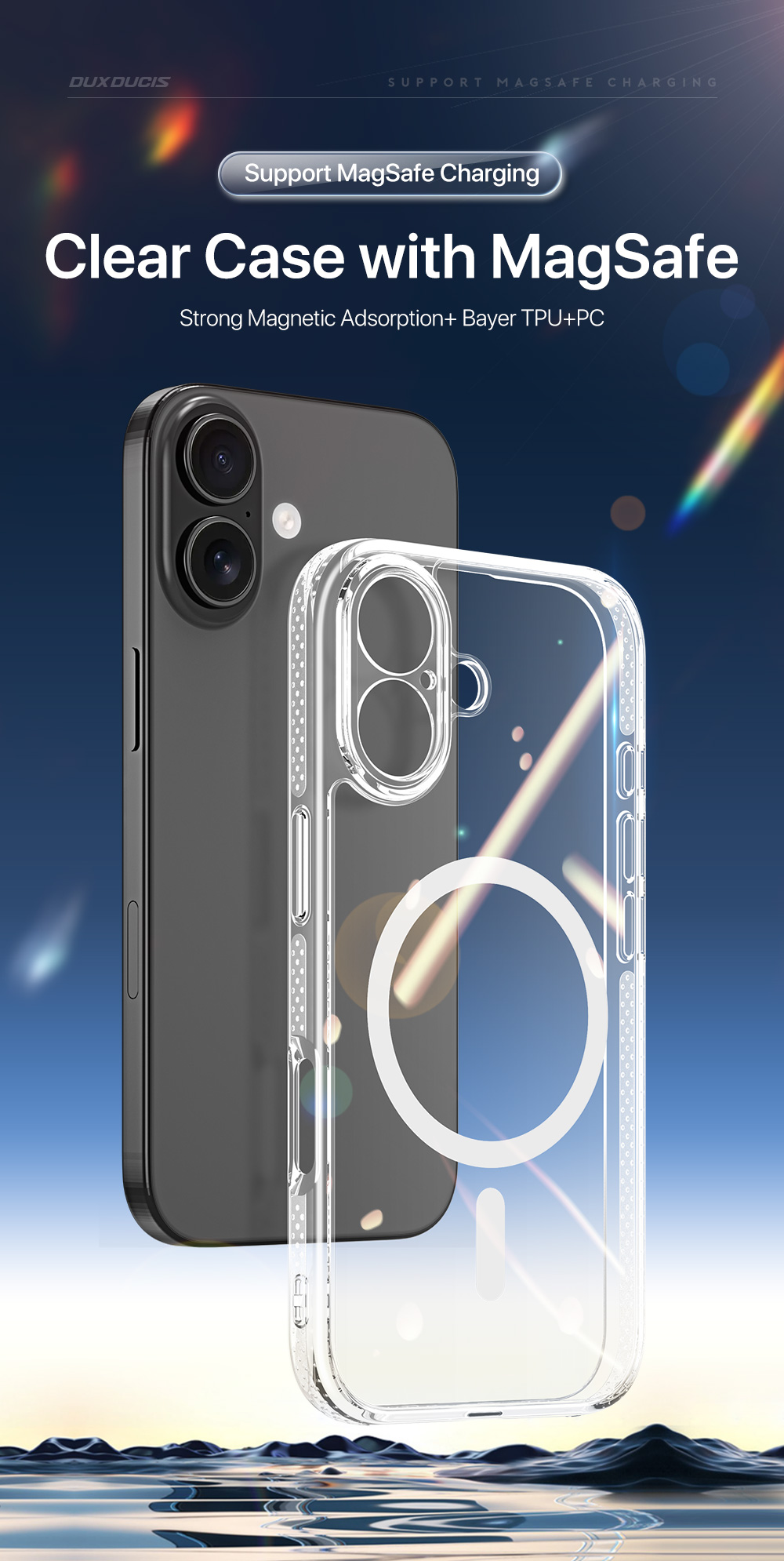 This crystal clear case with MagSafe for iPhone all materials are optimized to prevent yellowing over time.