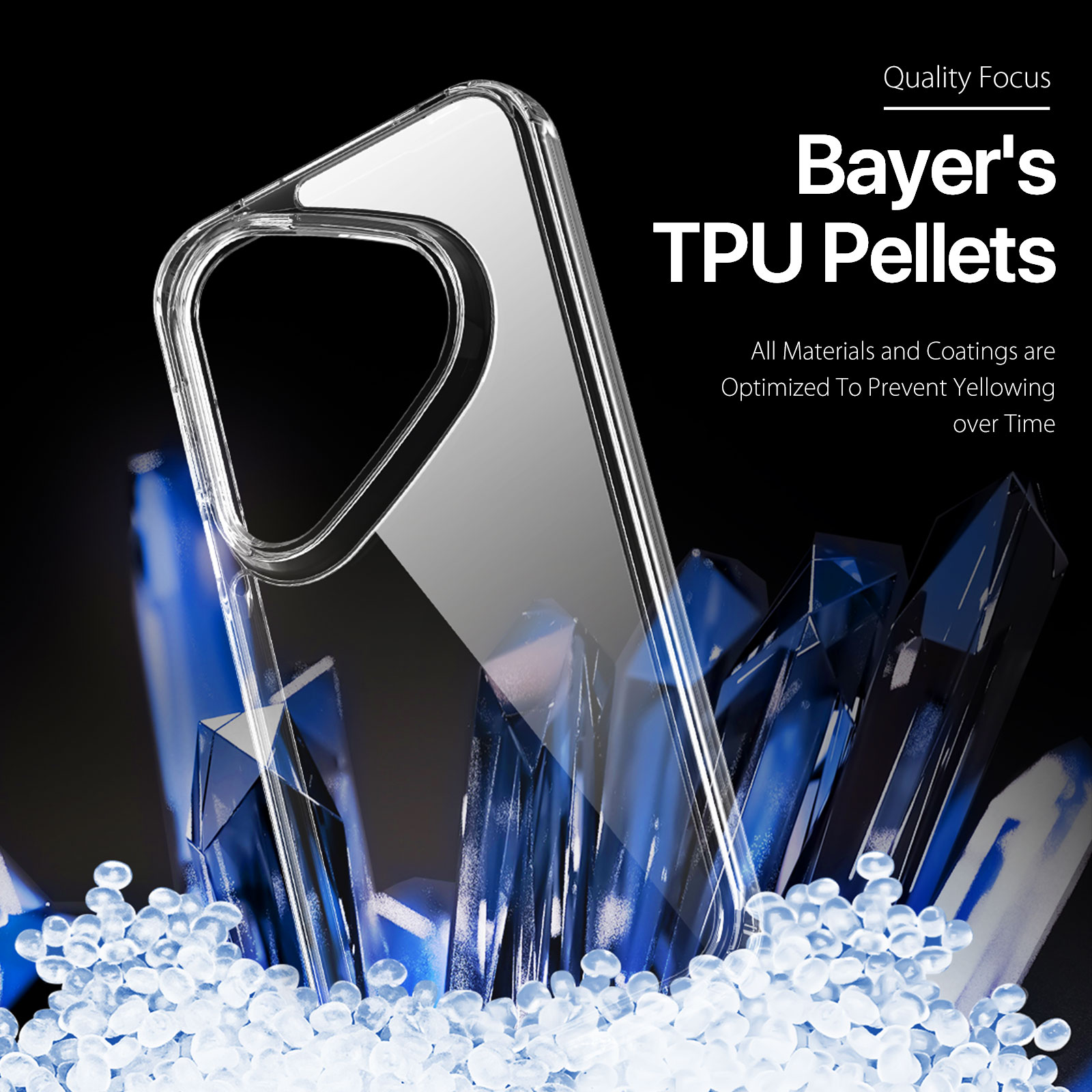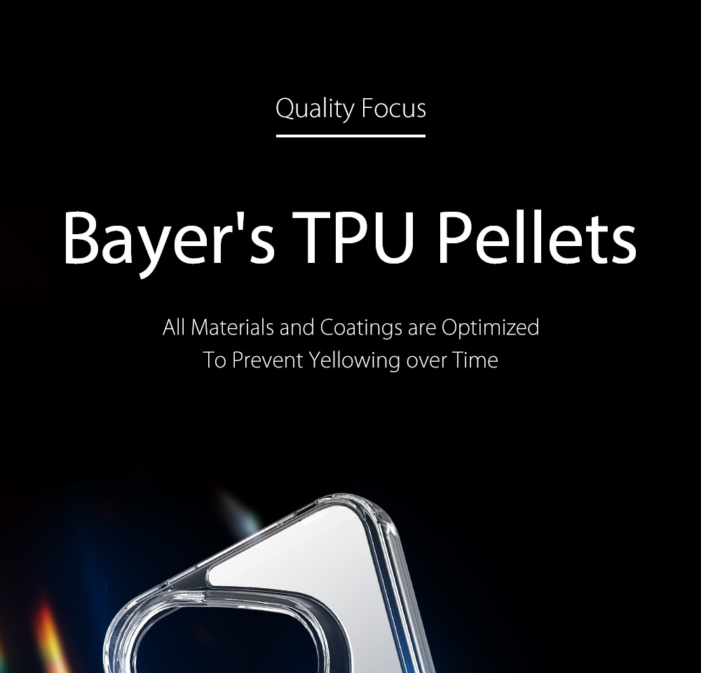Made of quality Bayer TPU+PC , all materials are optimized to prevent yellowing over time.
