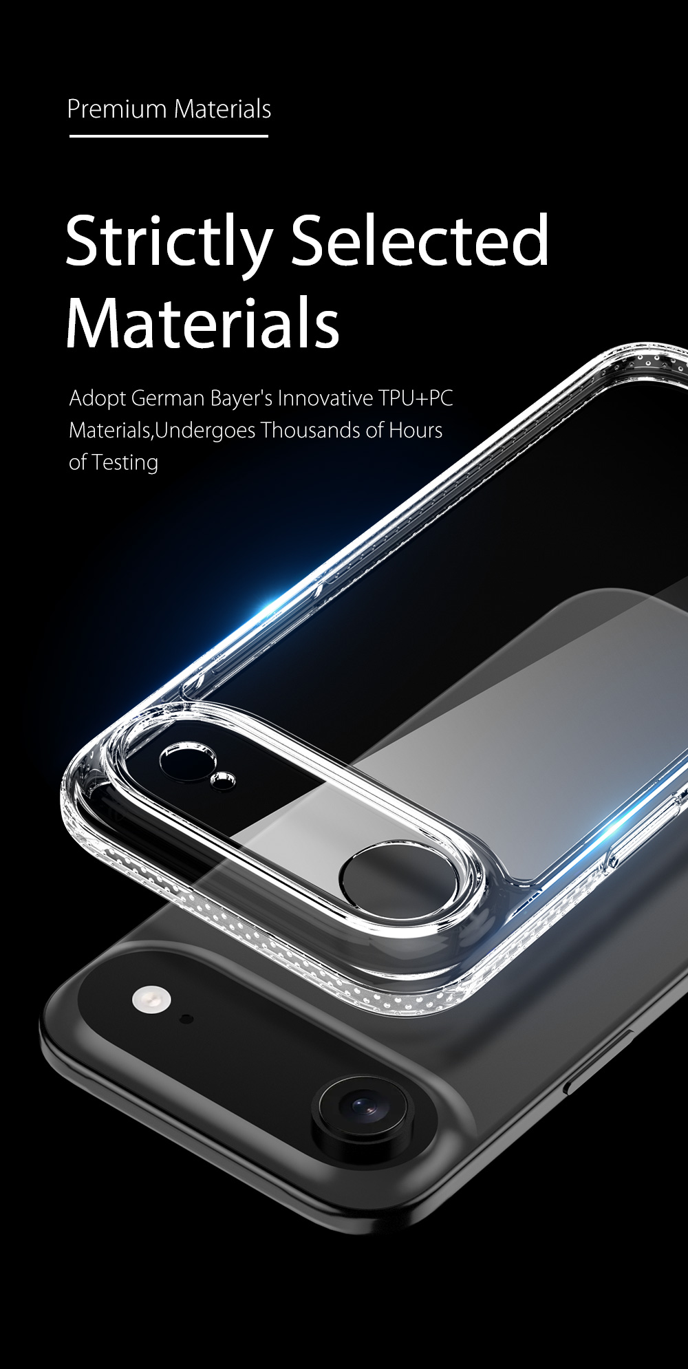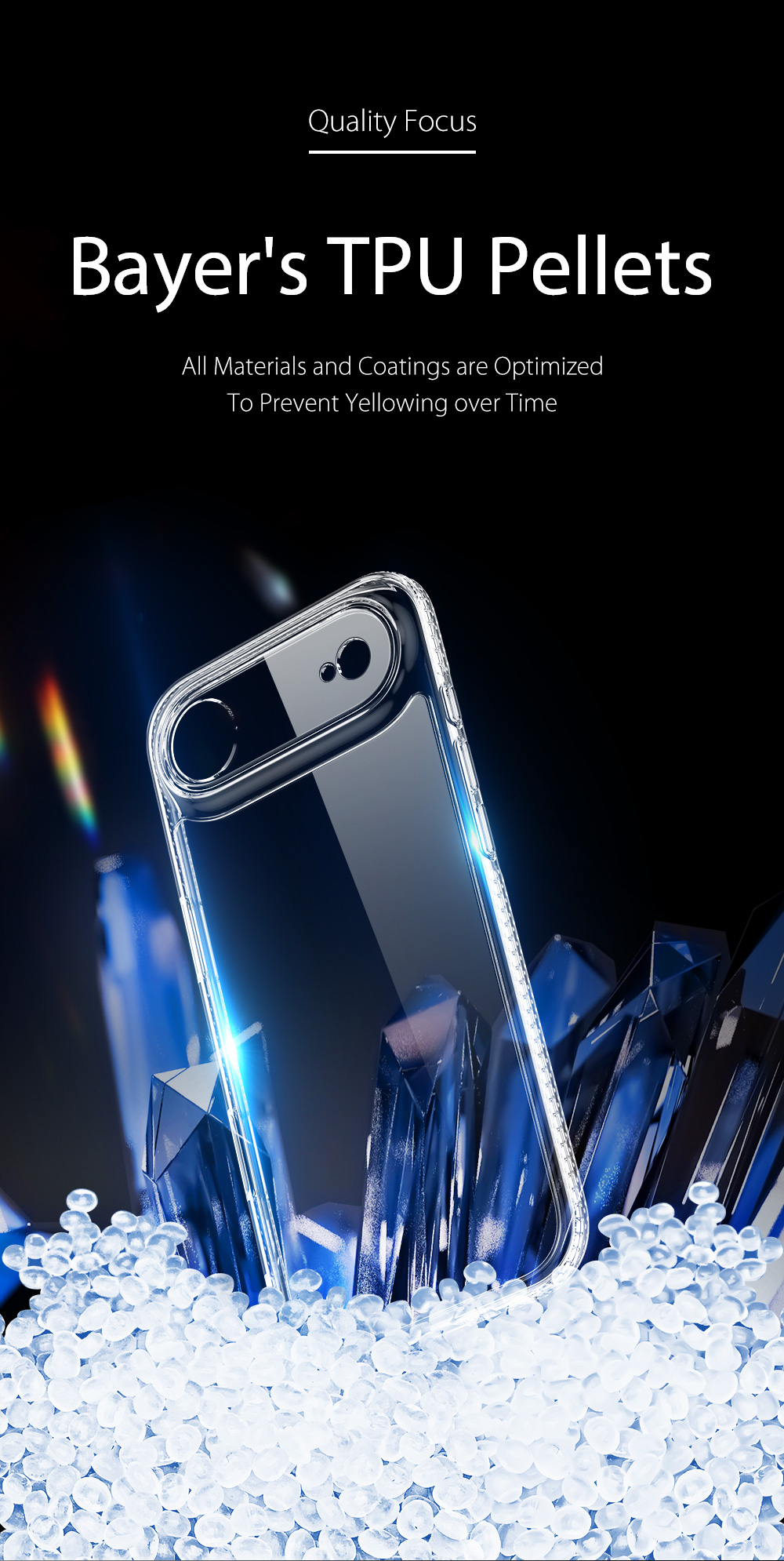 Made of quality Bayer TPU+PC , all materials are optimized to prevent yellowing over time.