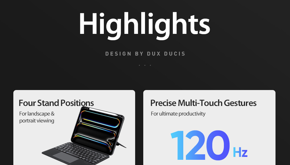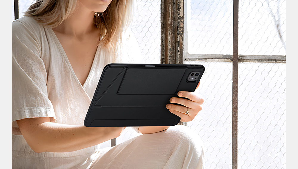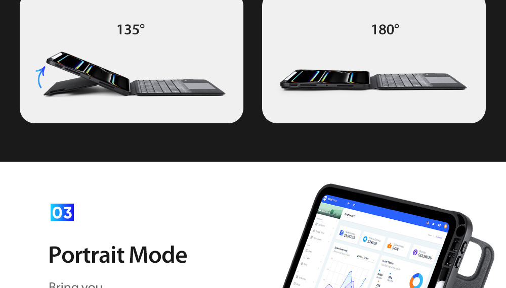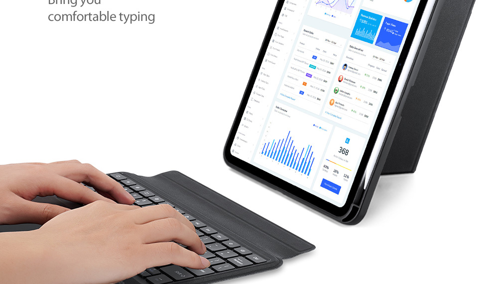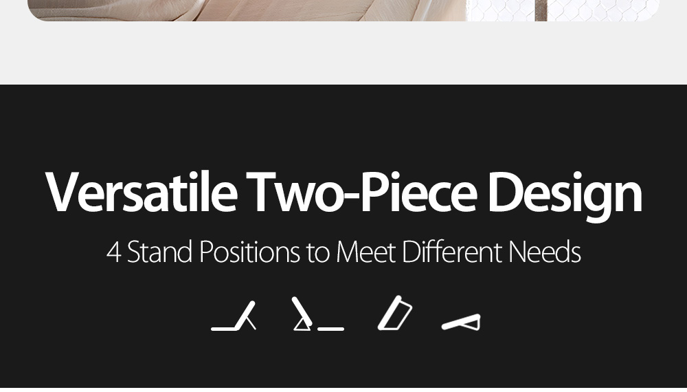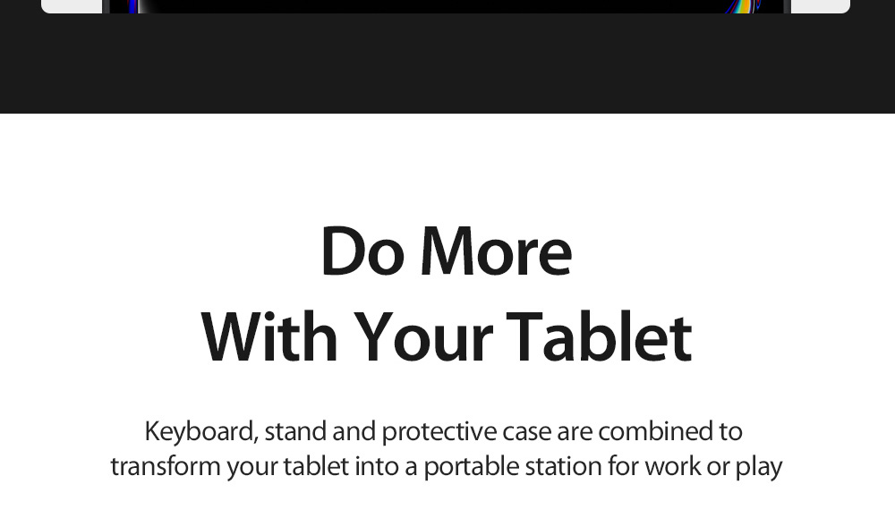 Keyboard, stand and protective case are combined to transform your tablet into a portable station for work or play. Versatile two-piece design with 4 stand positions to meet your different needs.