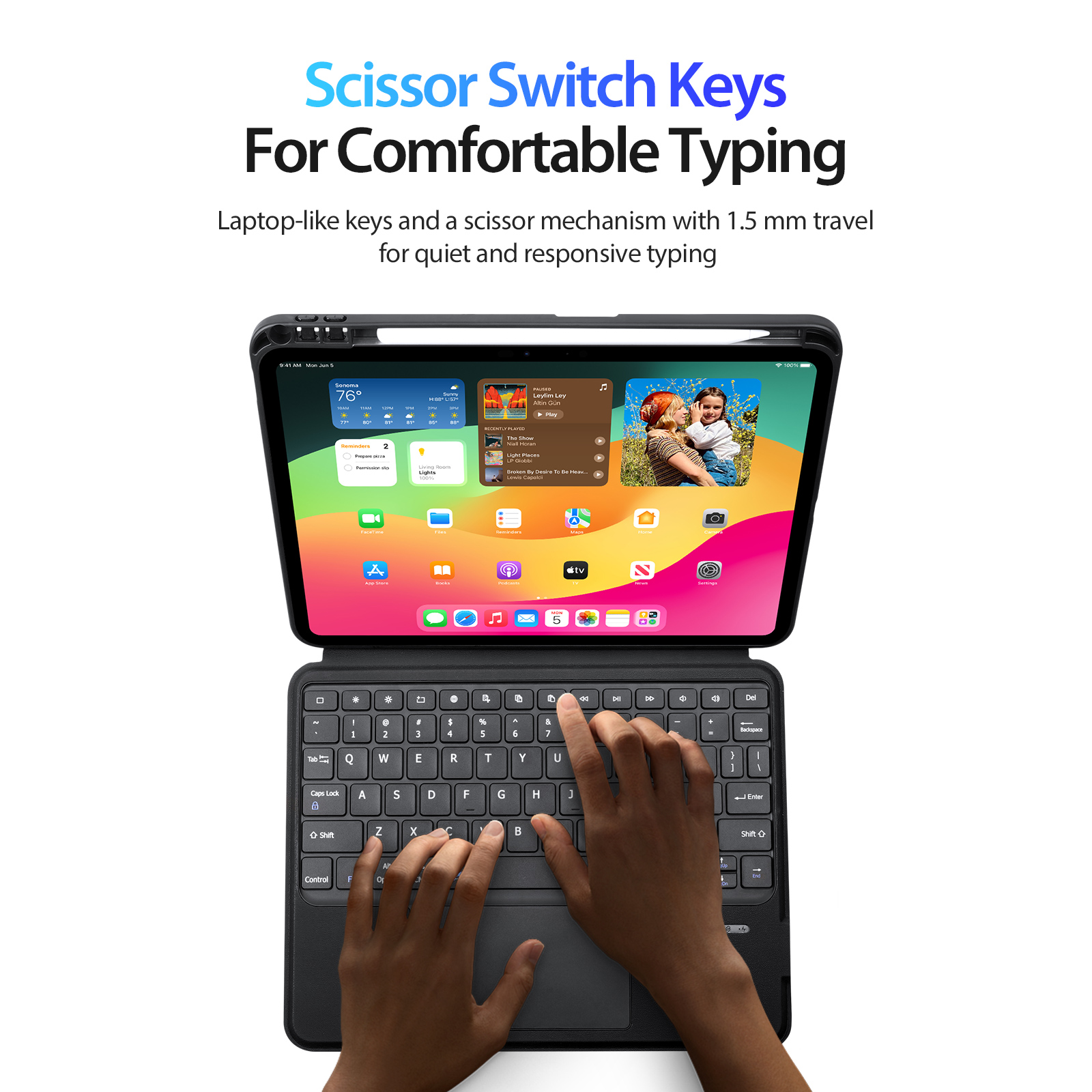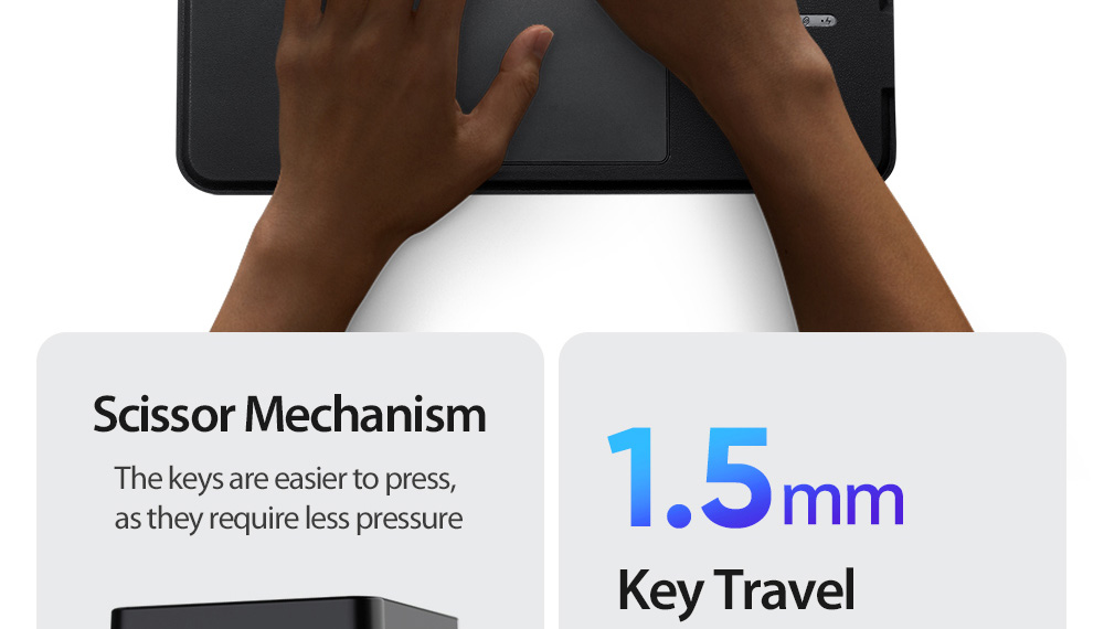 It has a trackpad which supports multi-touch gestures to make your work very convenient, a scissor mechanism with 1.5mm key travel for quiet and responsive typing.
