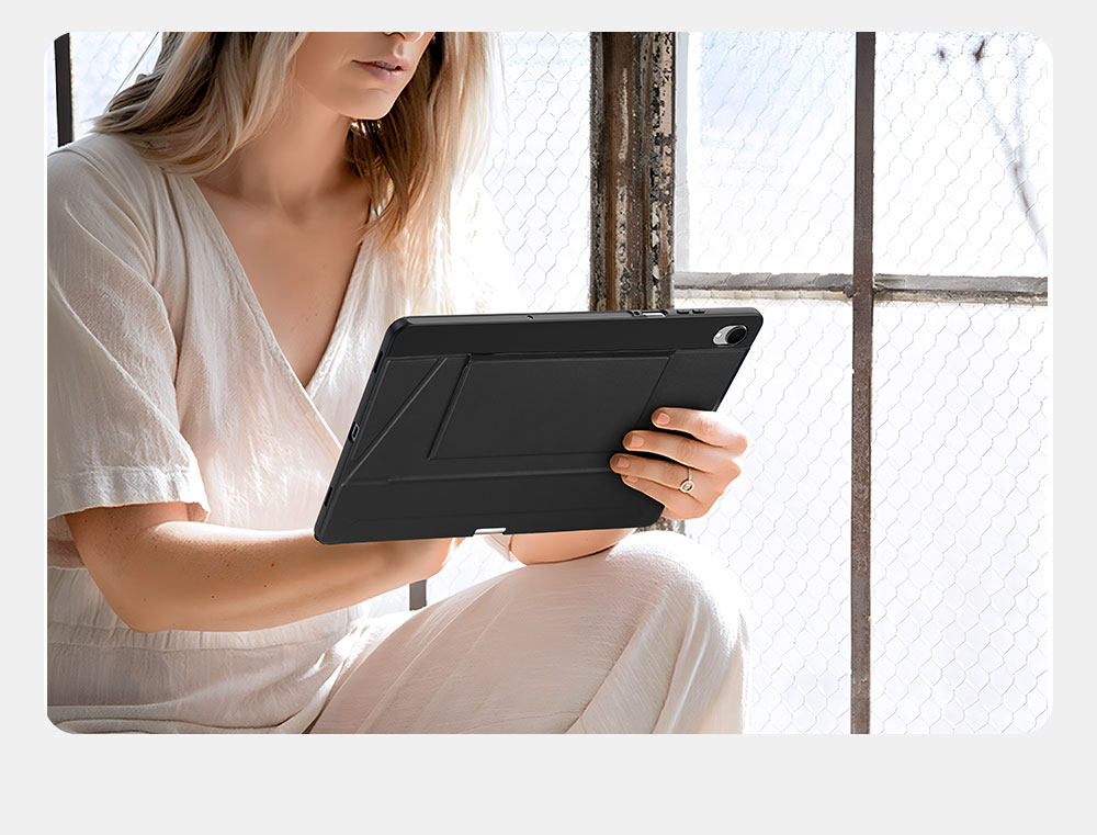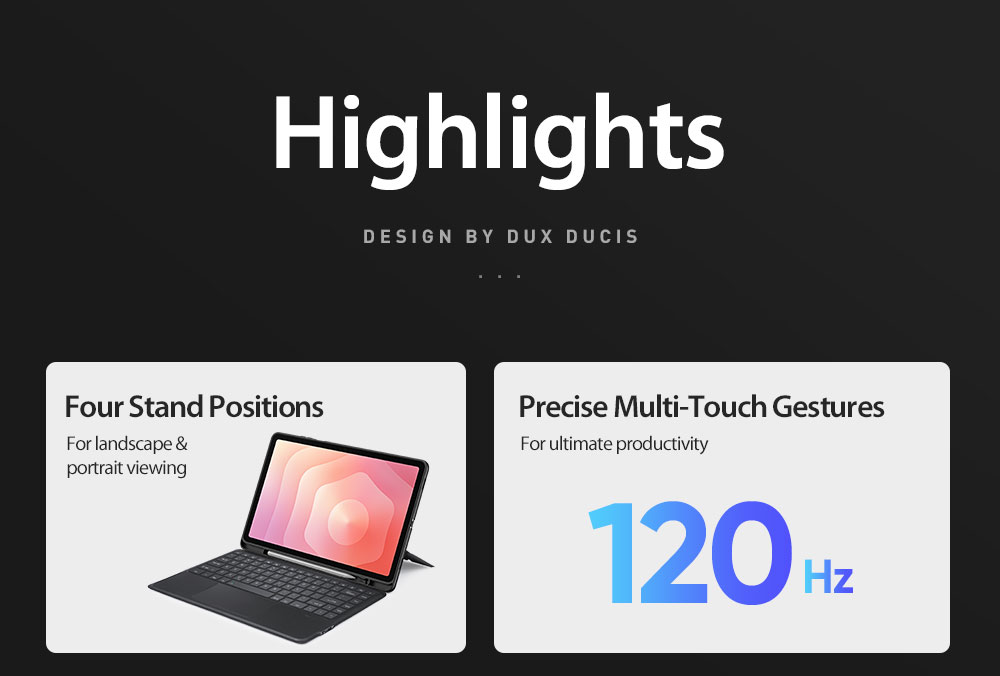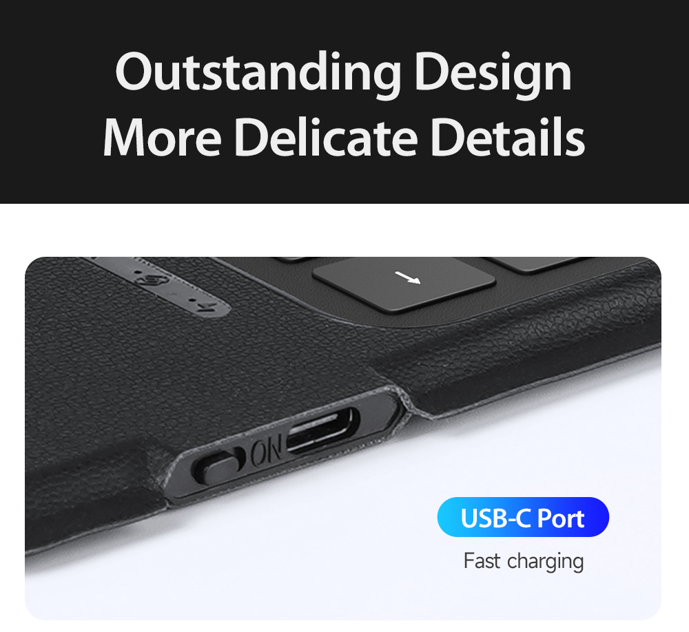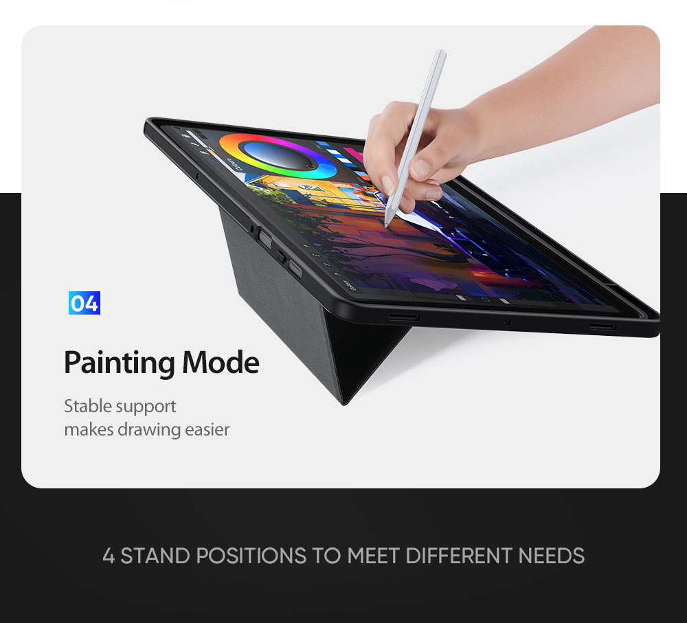 Keyboard, stand and protective case are combined to transform your tablet into a portable station for work or play. Versatile two-piece design with 4 stand positions to meet your different needs.
