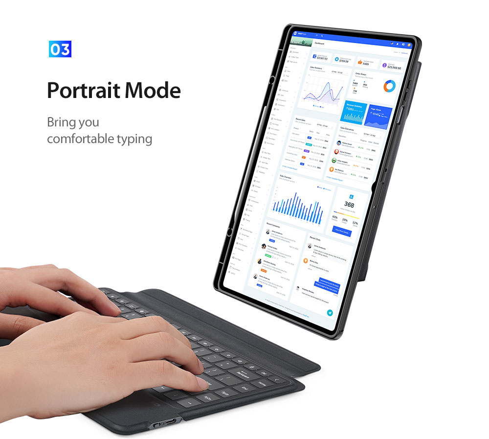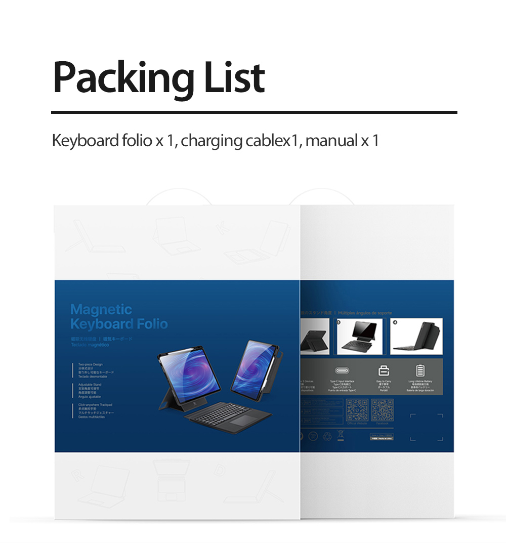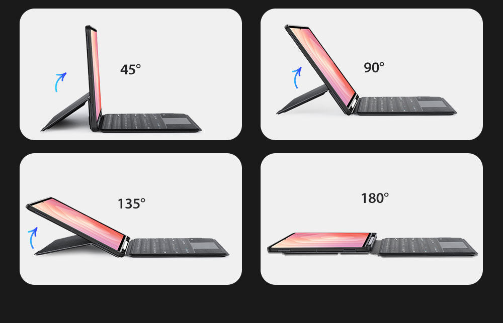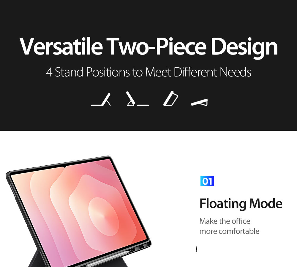 Keyboard, stand and protective case are combined to transform your tablet into a portable station for work or play. Versatile two-piece design with 4 stand positions to meet your different needs.