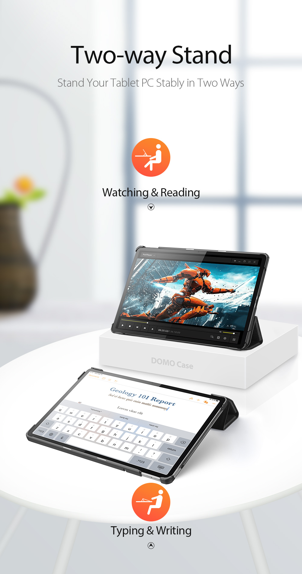 Comes with wake/sleep function, open the case, iPad wakes up; close the case, iPad sleeps.
