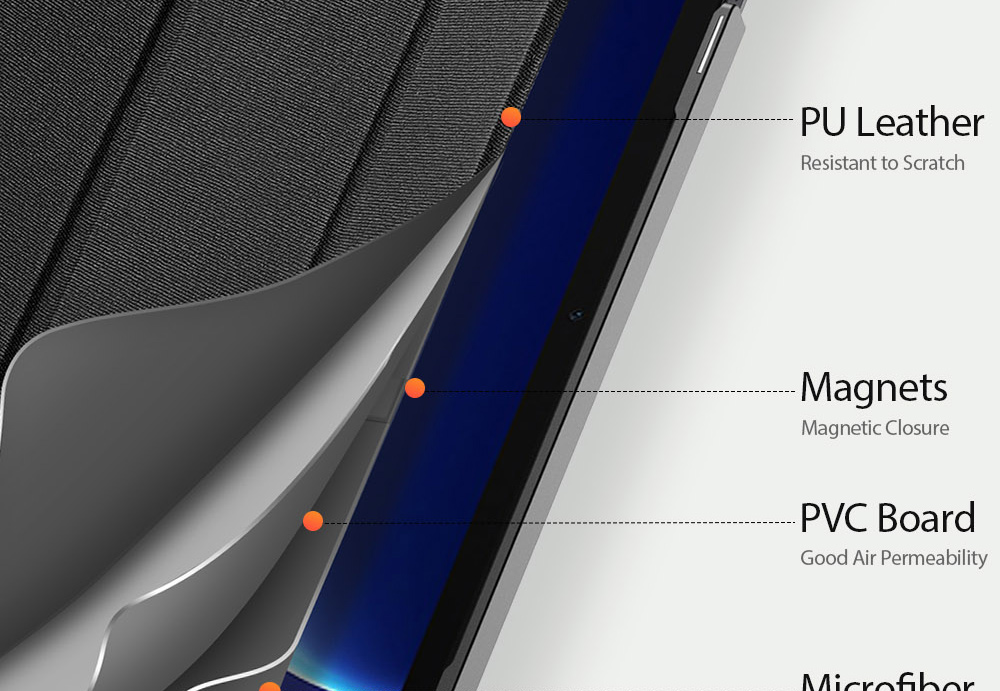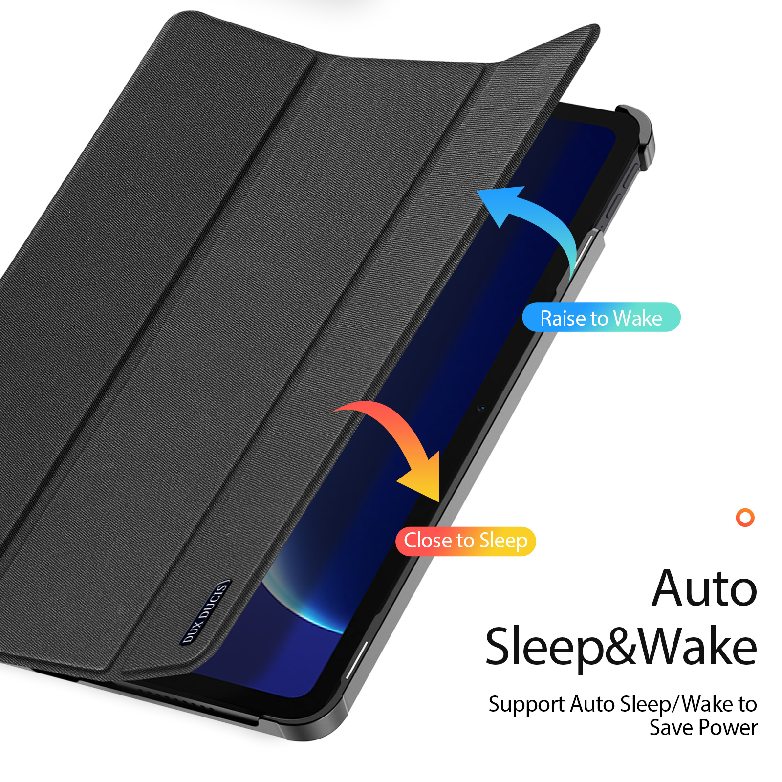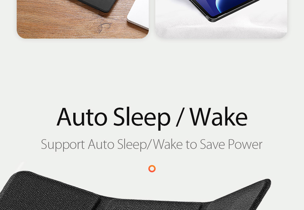 Comes with wake/sleep function, open the case, the tablet wakes up; close the case, it sleeps.