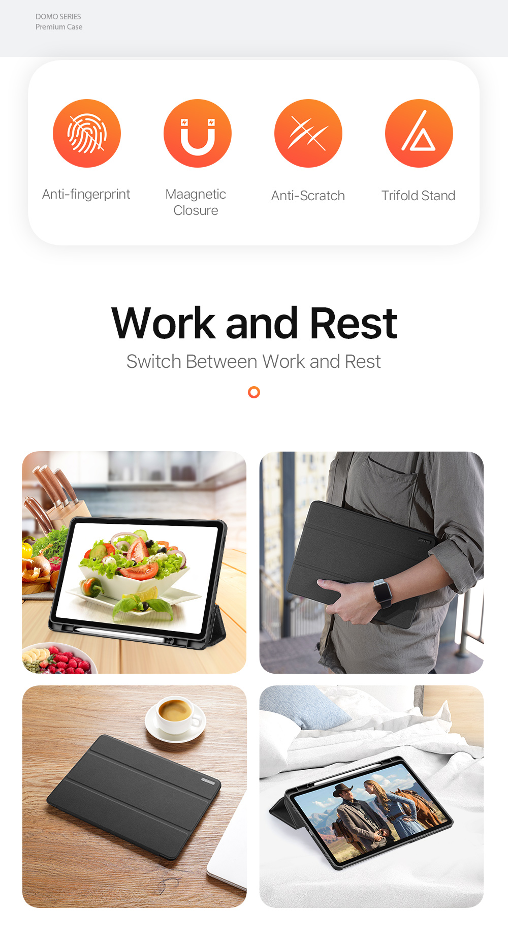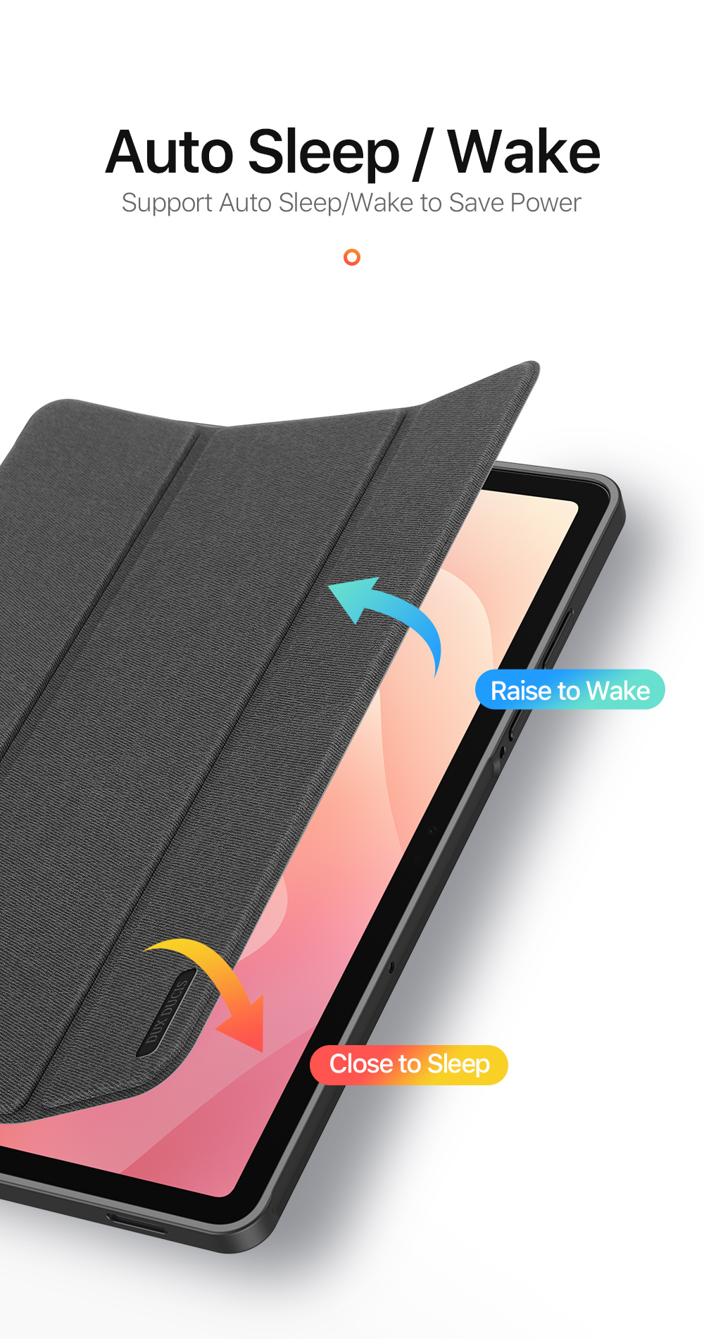Comes with wake/sleep function, open the case, the tablet wakes up; close the case, it sleeps.