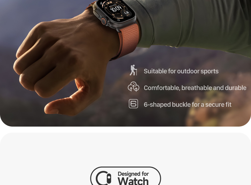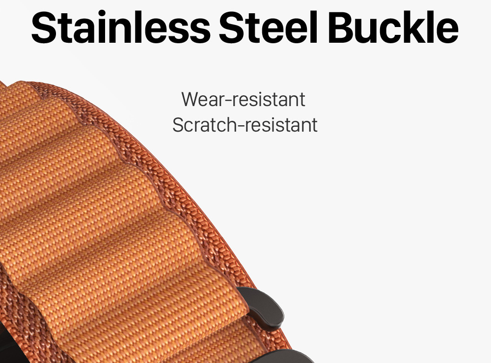 Made from two textile layers woven together into one continuous piece without stitching, it is soft, breathable and lightweight strap. This nylon strap instills with 6-shaped stainless steel buckle for a secure fit. It's specially suitable for outdoor sports.