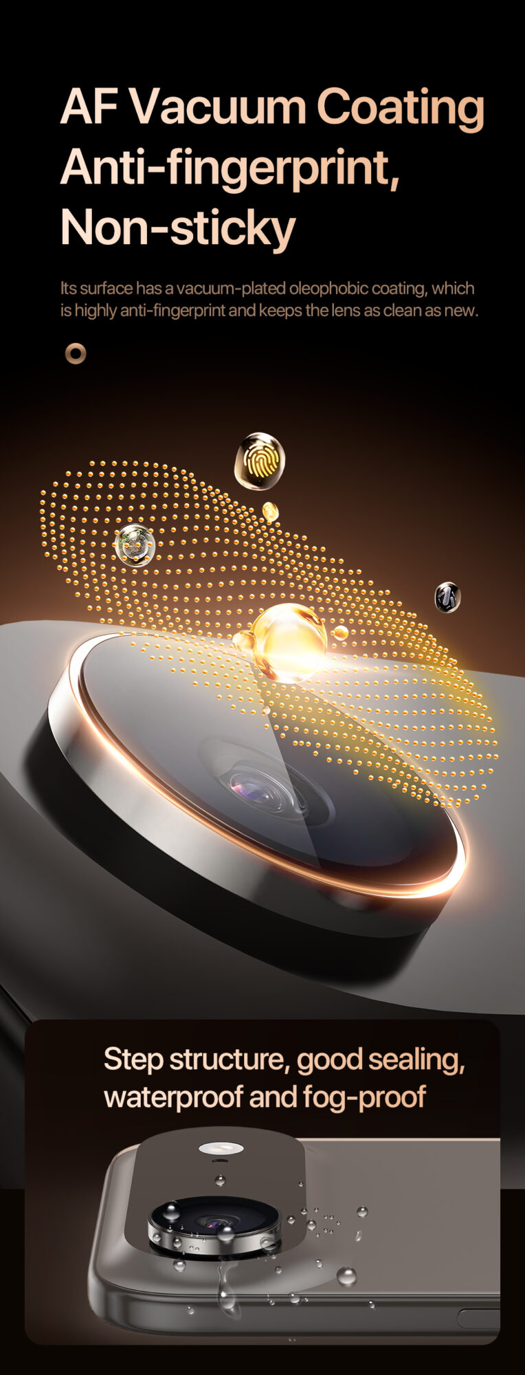 Its surface has a vacuum-plated oleophobic coating, which is highly anti-fingerprint and keeps the lens as clean as new;