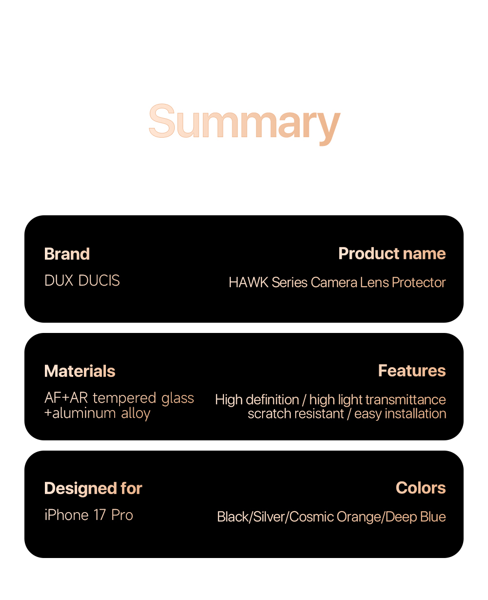 HAWK Series Camera Lens Protector for iPhone 17 Pro Max