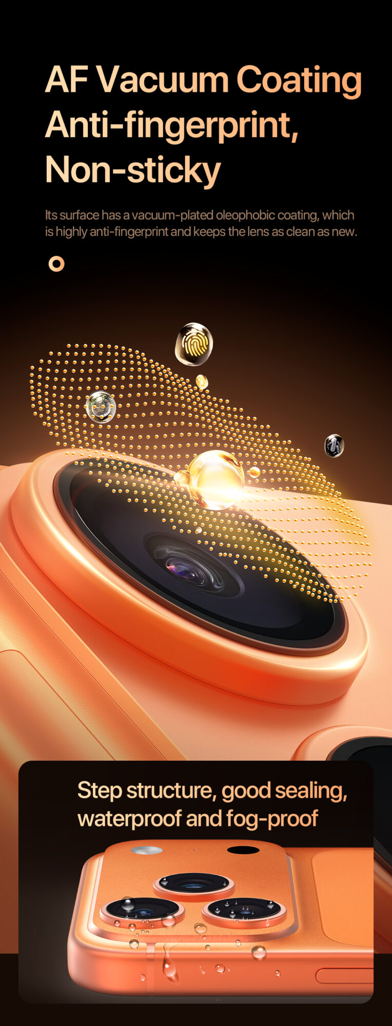 Its surface has a vacuum-plated oleophobic coating, which is highly anti-fingerprint and keeps the lens as clean as new;