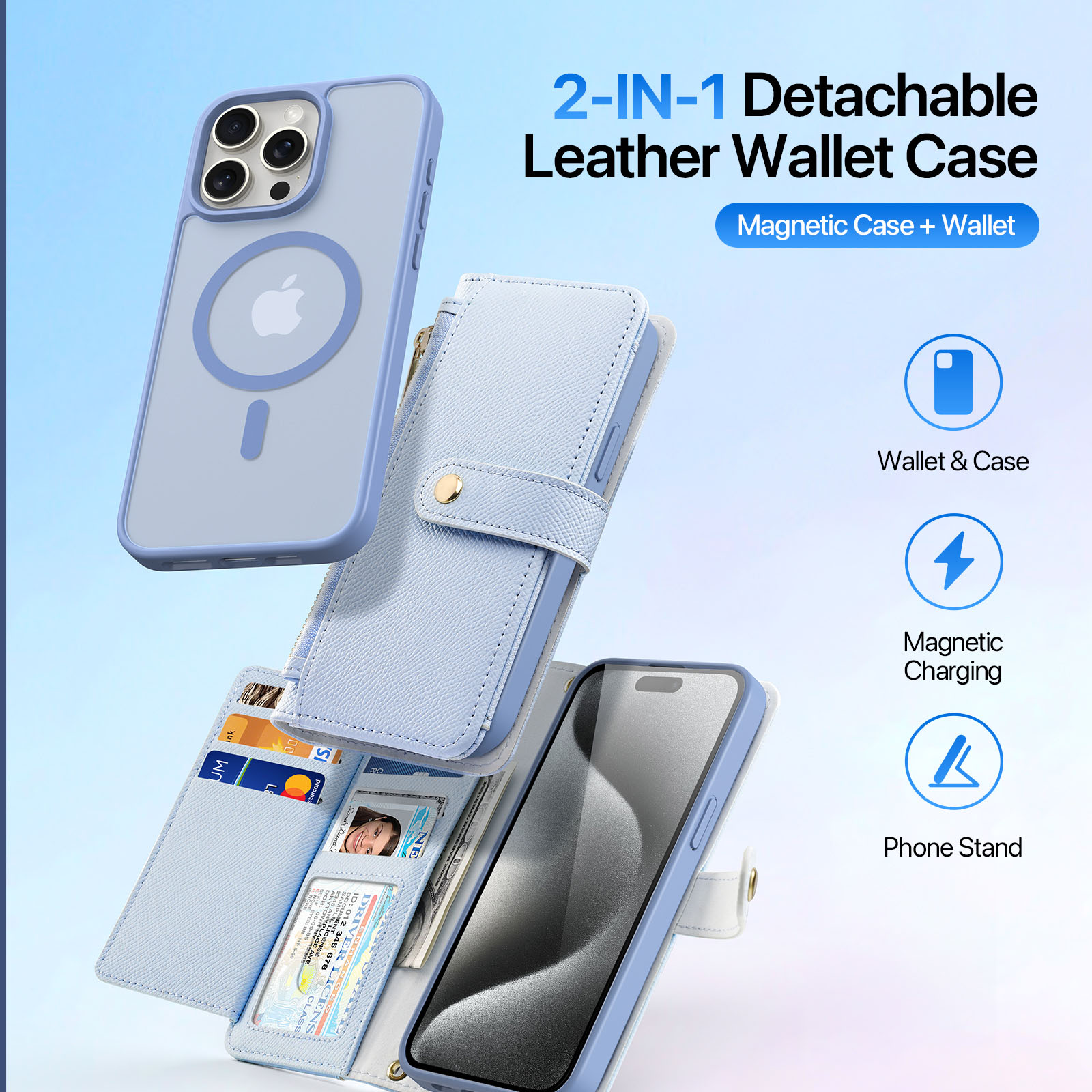 Lawa Series Detachable Wallet Case for iPhone 15 Pro