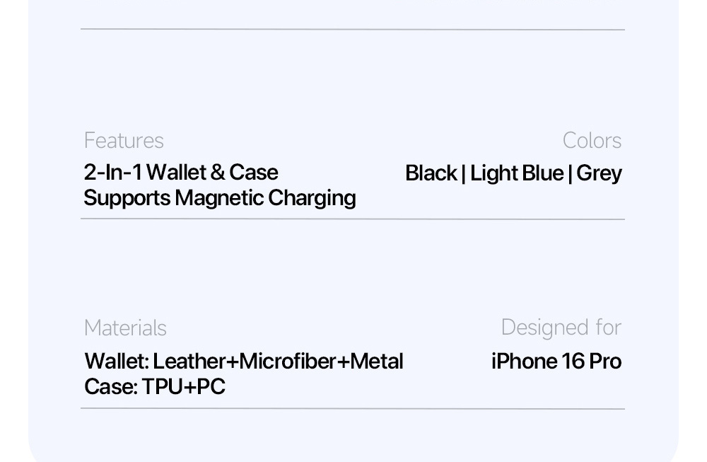 Lawa Series Detachable Wallet Case for iPhone 16 Pro