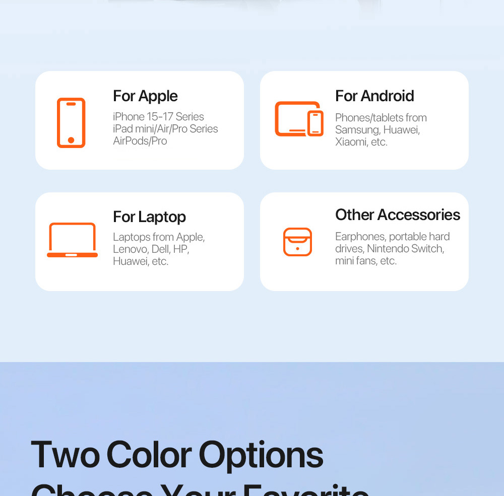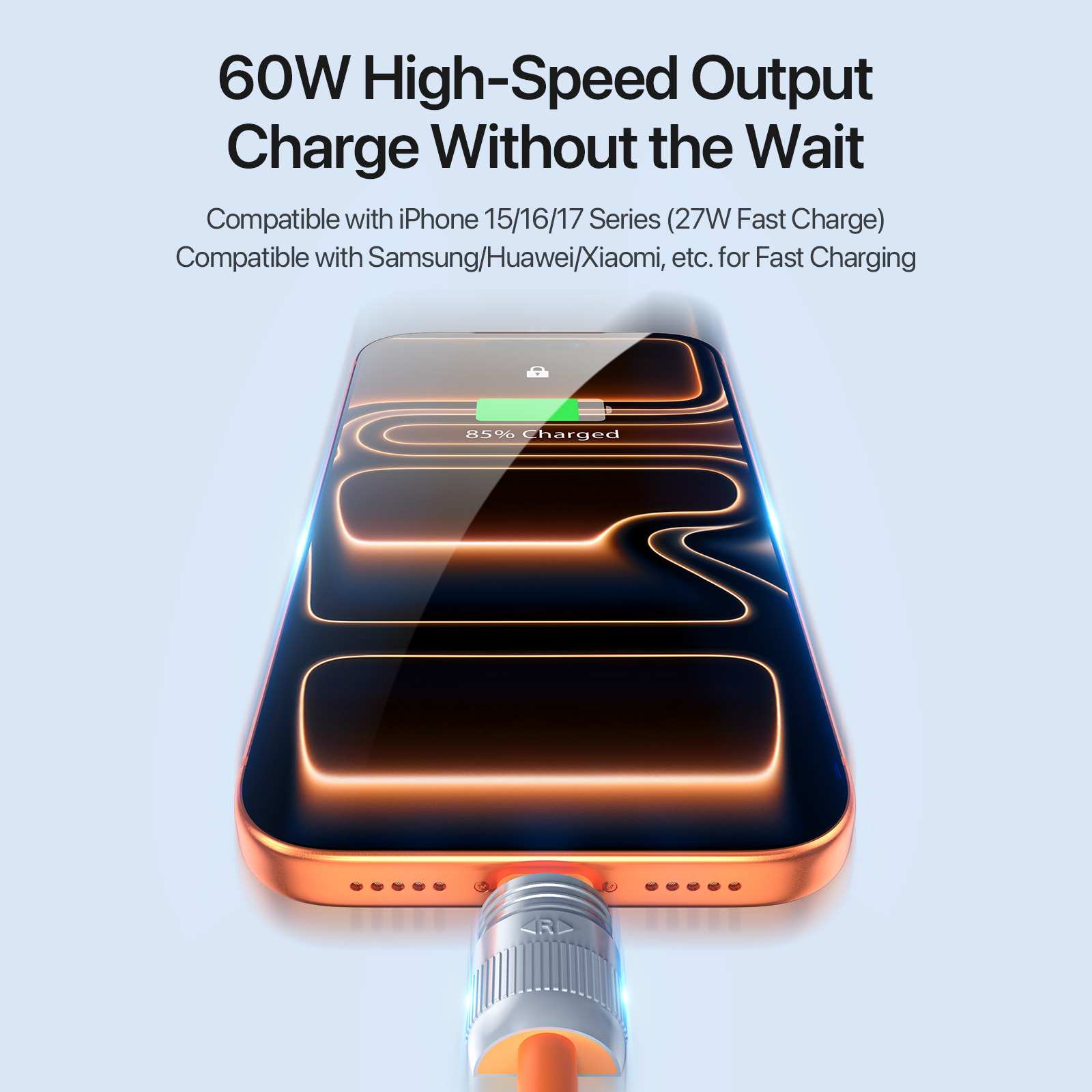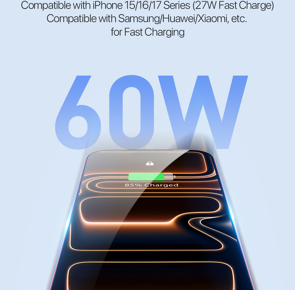 2. 60W Fast Charging | Powers phones, tablets, and laptops quickly with wide USB‑C compatibility.