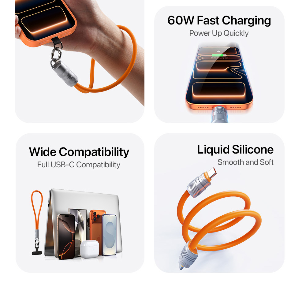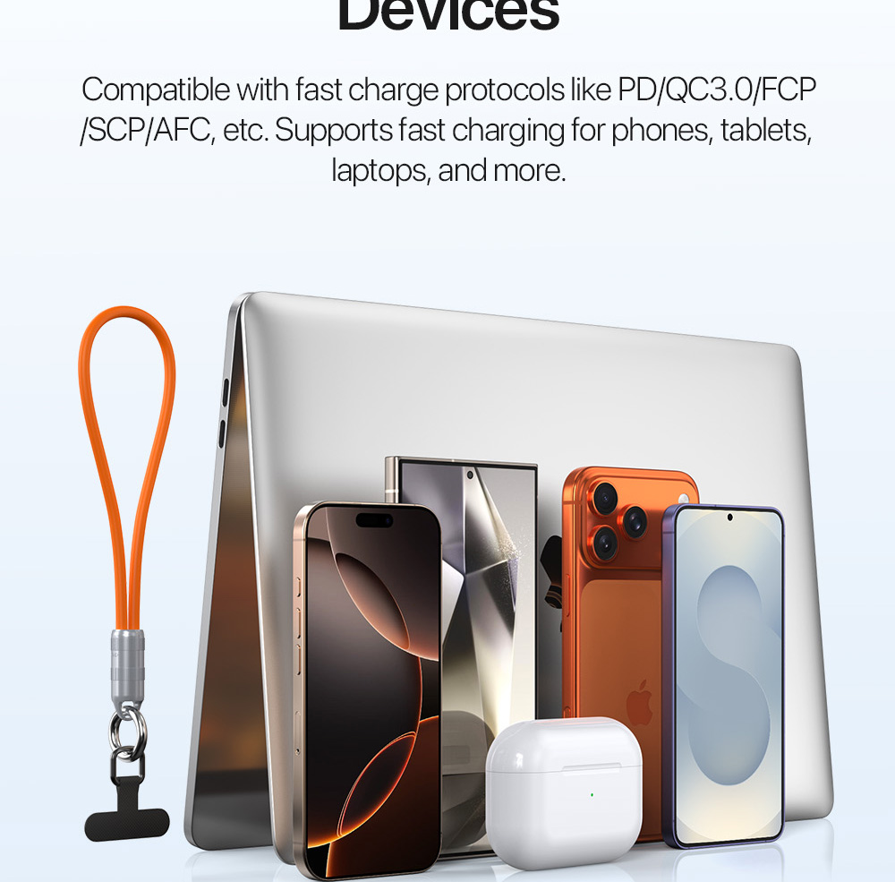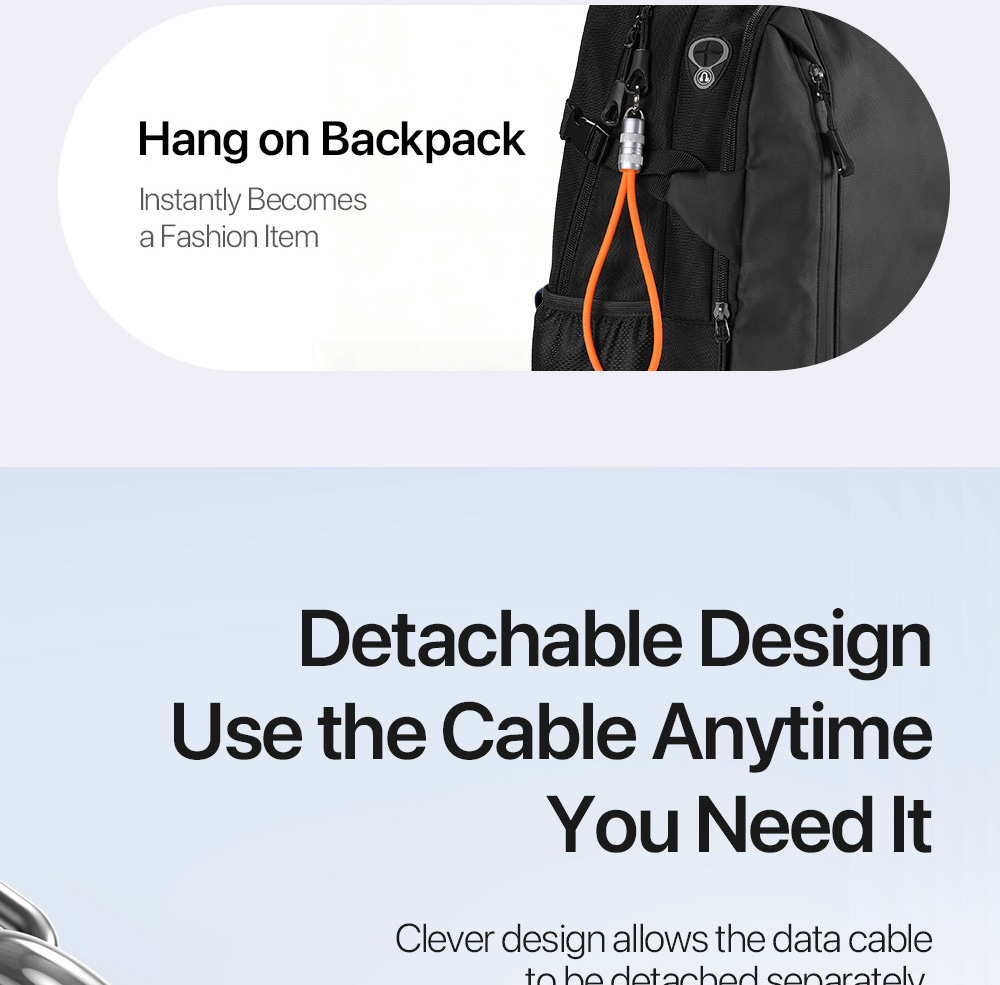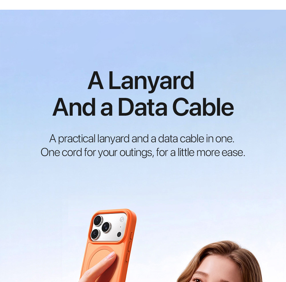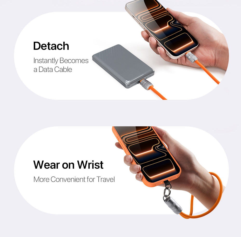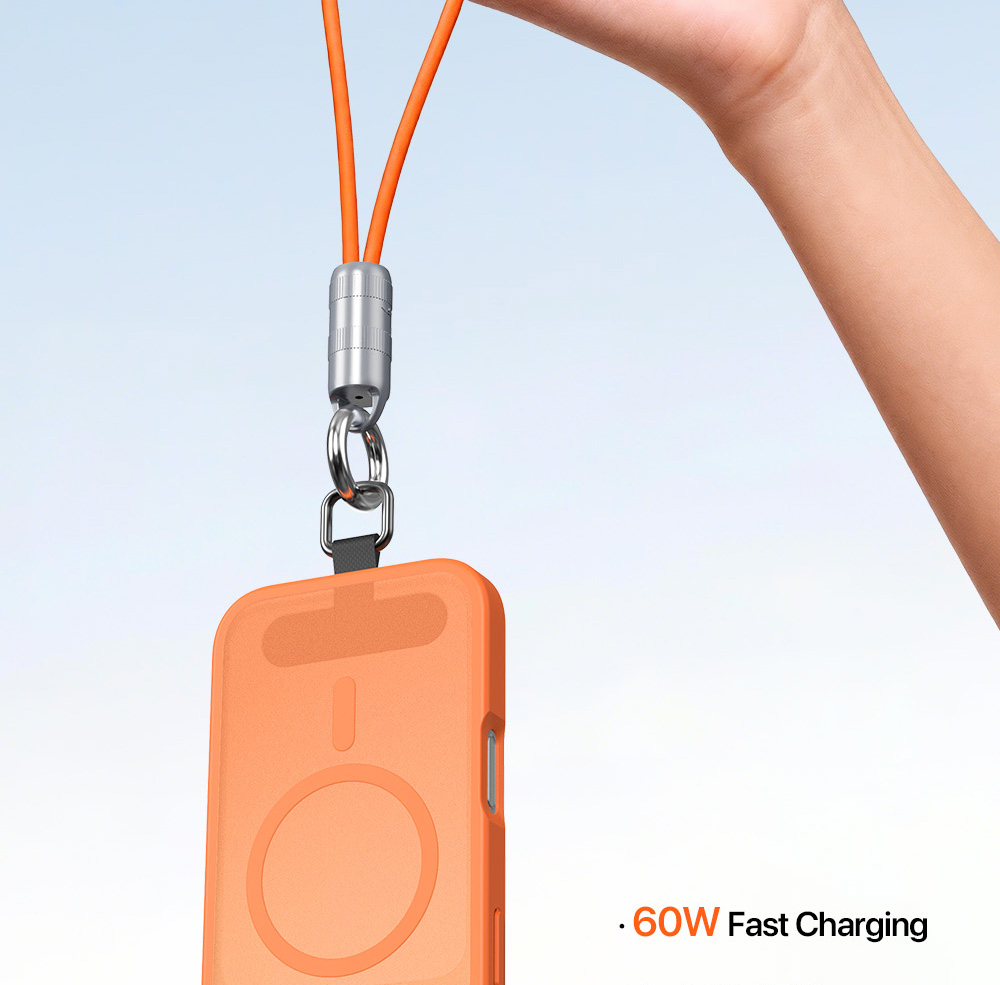 1. 2-in-1 Wearable Design | Detachable lanyard & cable in one, for hands‑free carrying and instant use.