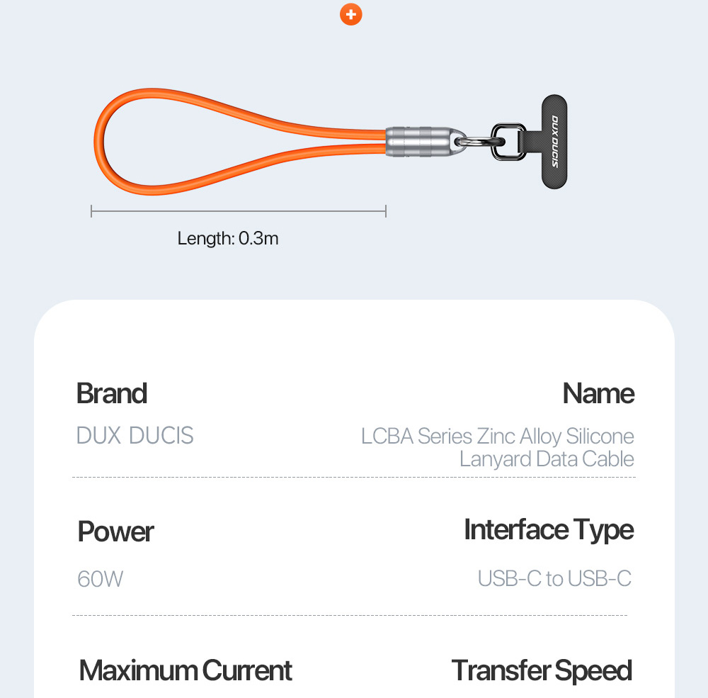 LCBA Series Zinc Alloy Silicone Lanyard Data Cable 60W