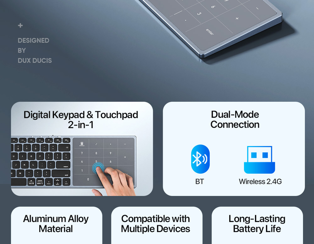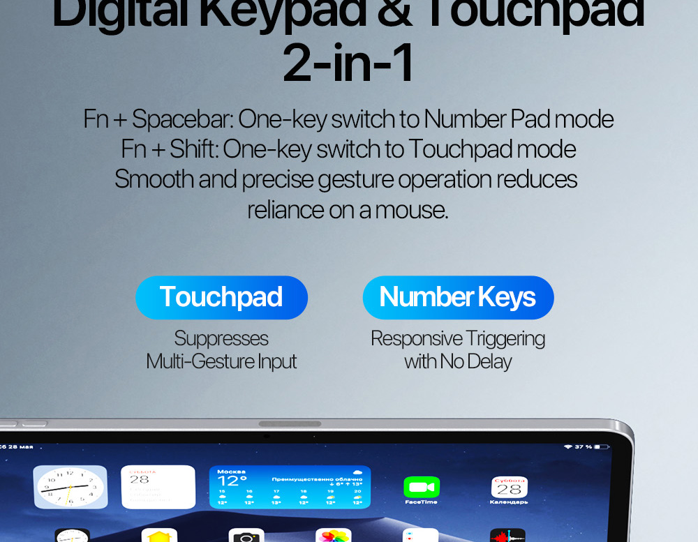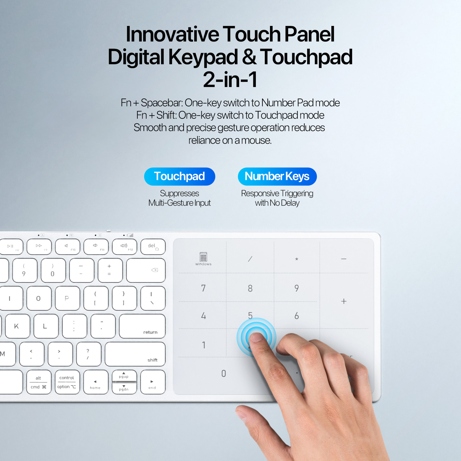 2. Innovative 2-in-1 touchpad/number pad with mode switching