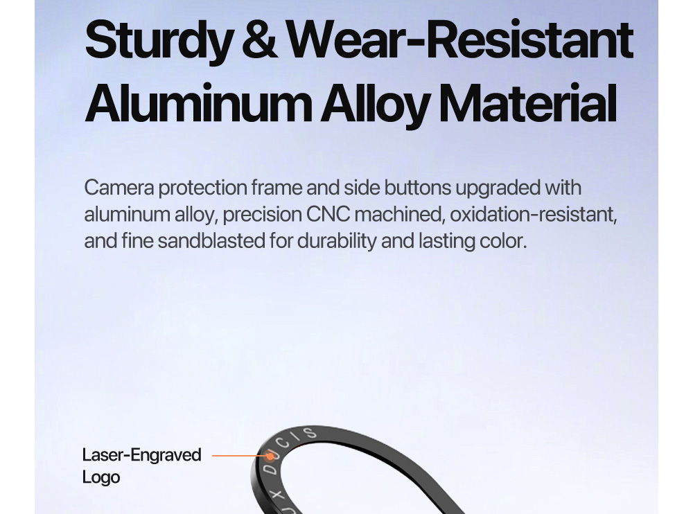 4. Aluminum Frame - Durable CNC-machined buttons and camera ring for lasting quality.