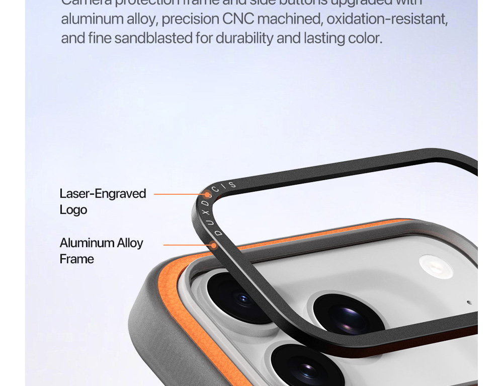 4. Aluminum Frame - Durable CNC-machined buttons and camera ring for lasting quality.