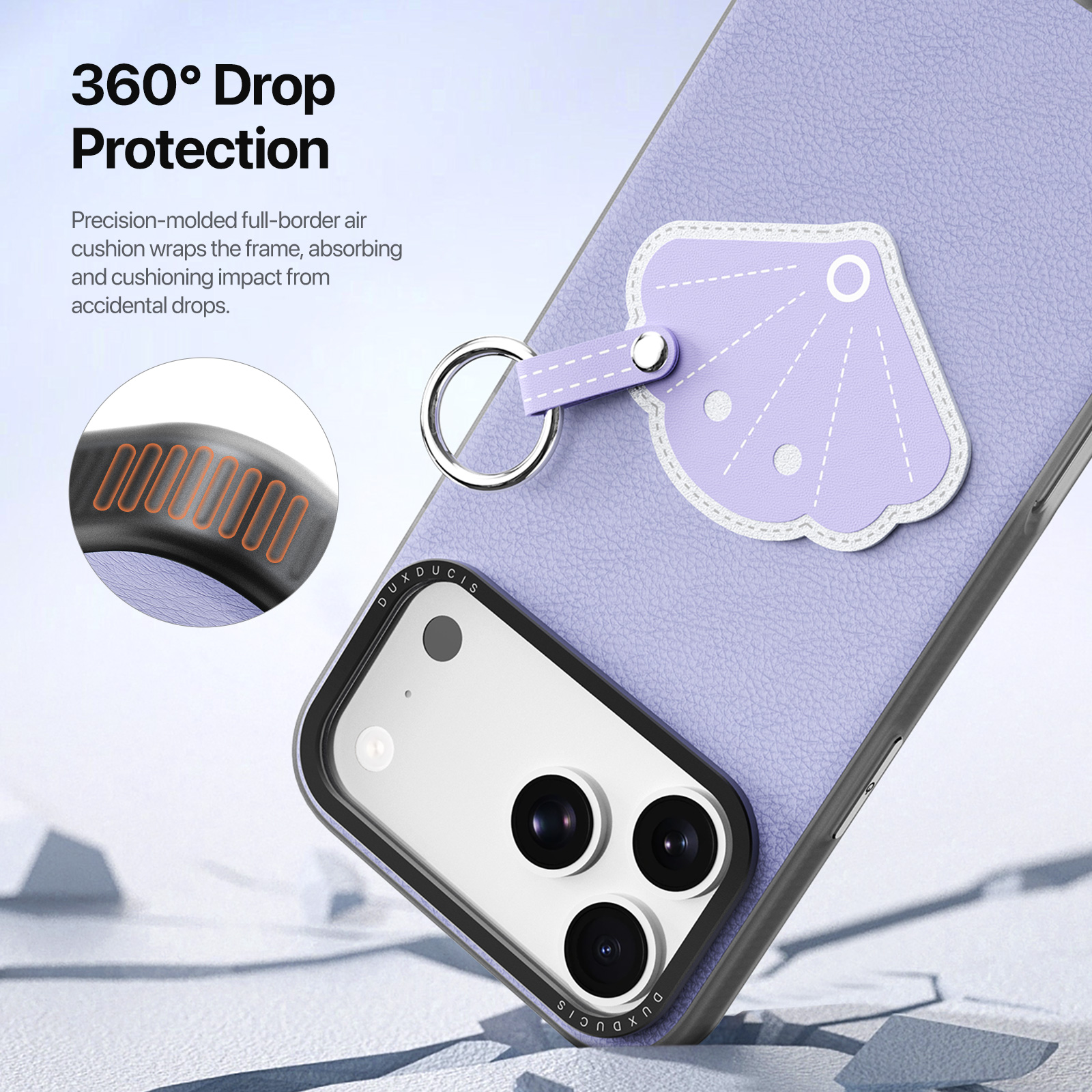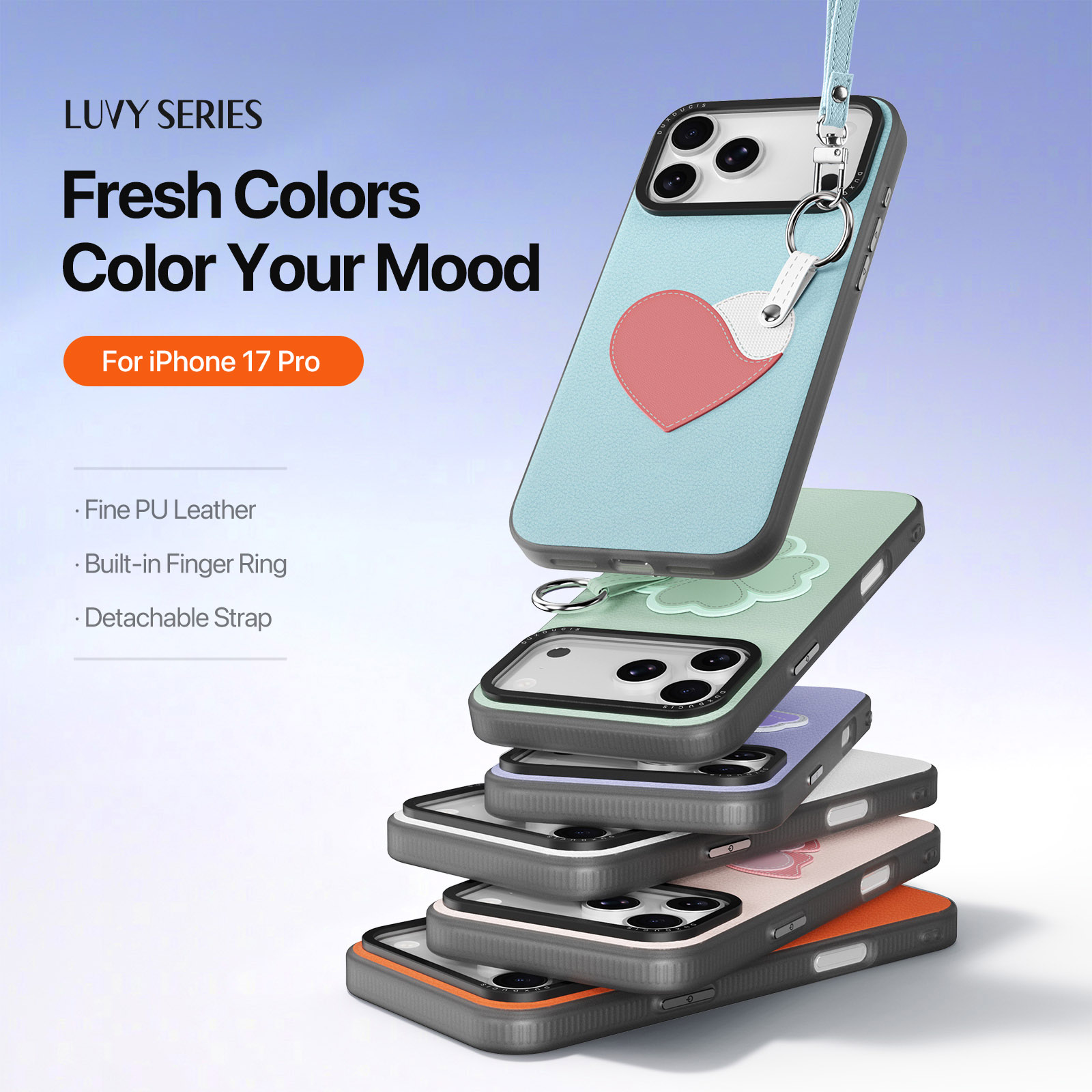 LUVY Series PU Leather Ring-Style Phone Case for iPhone 17 Pro