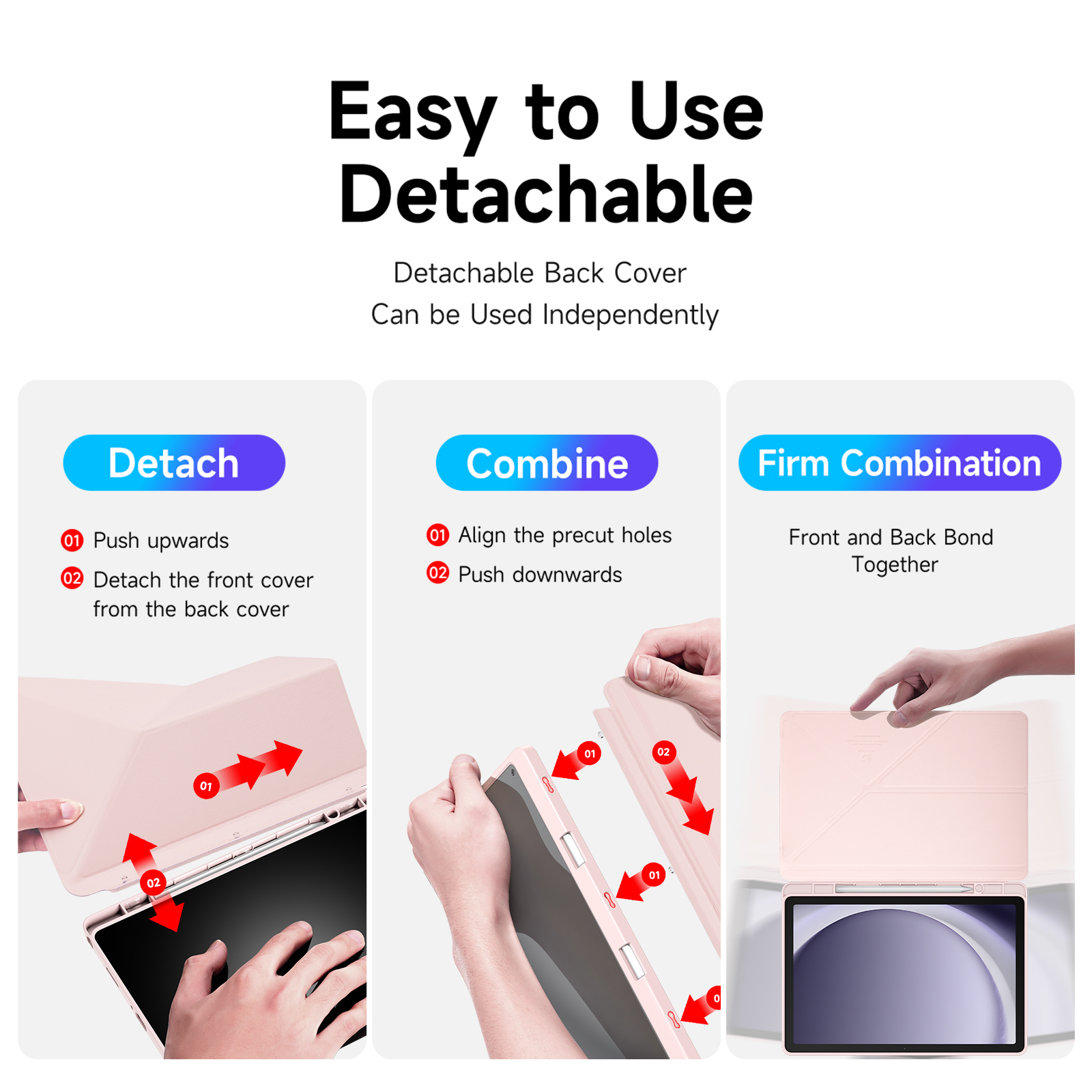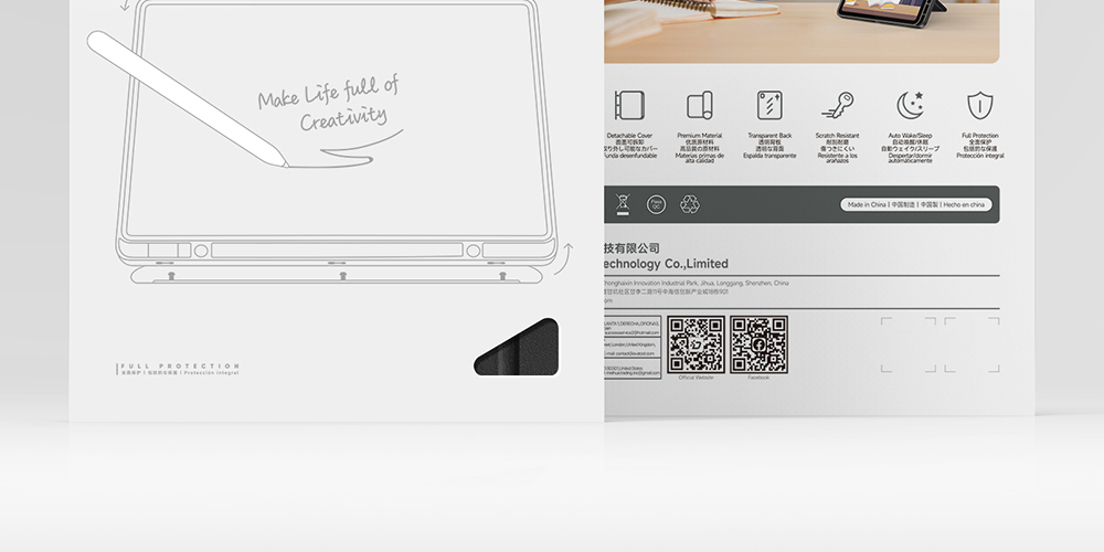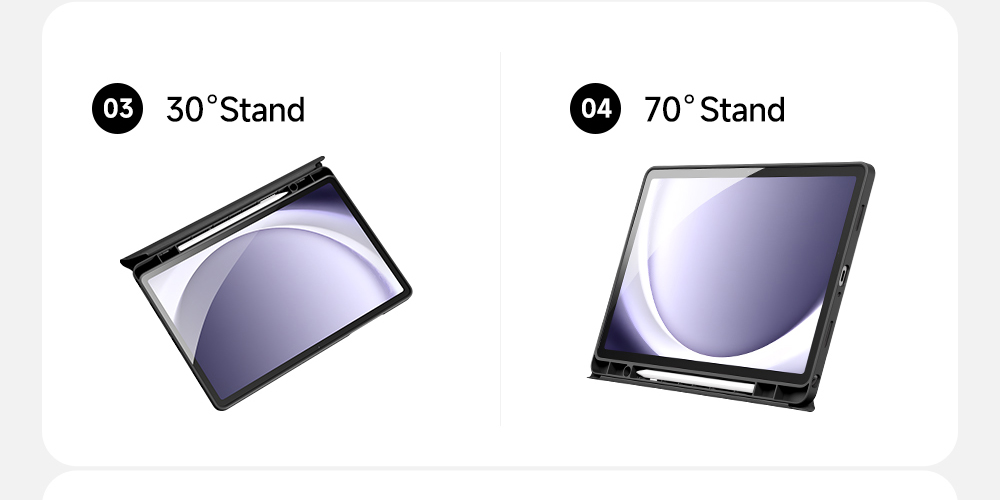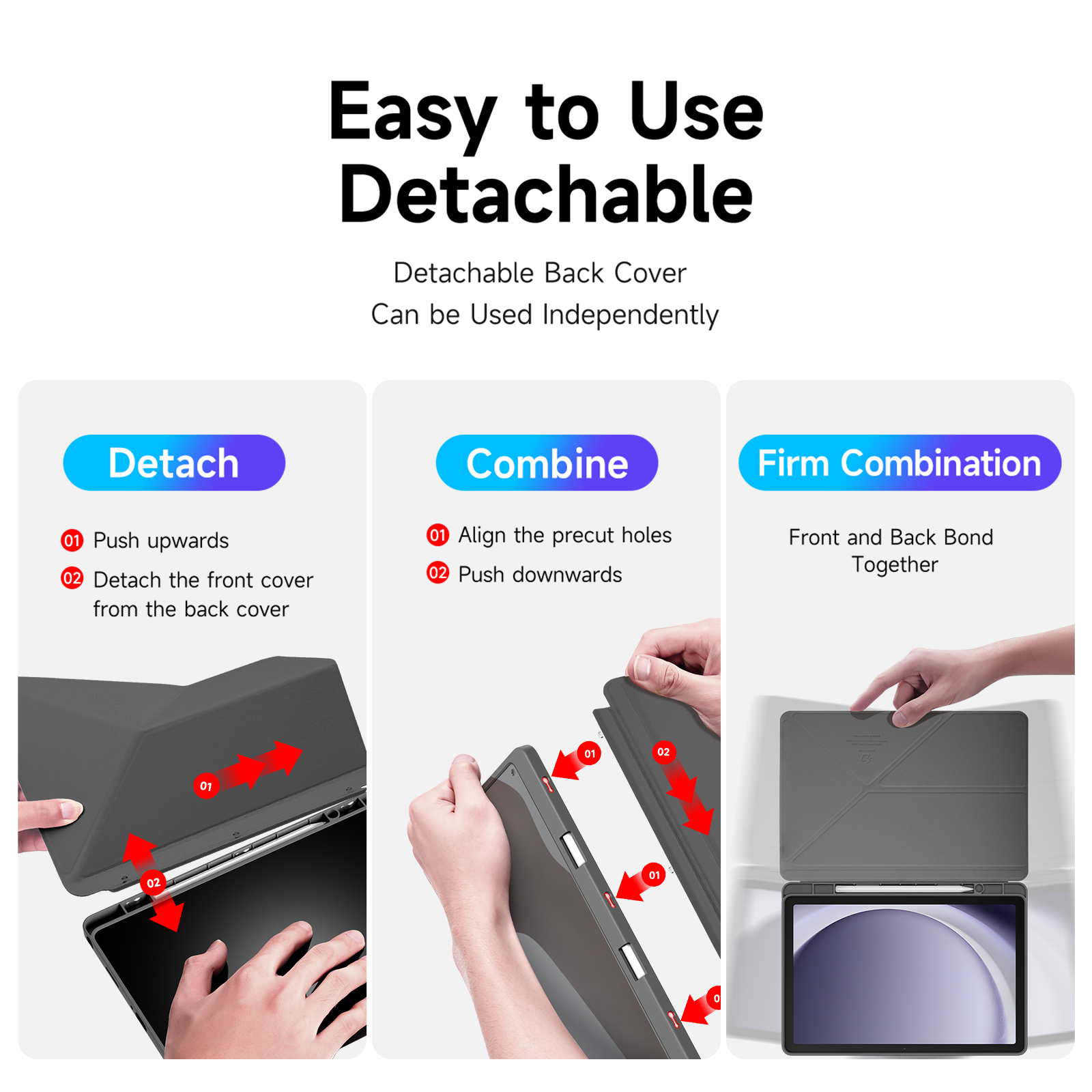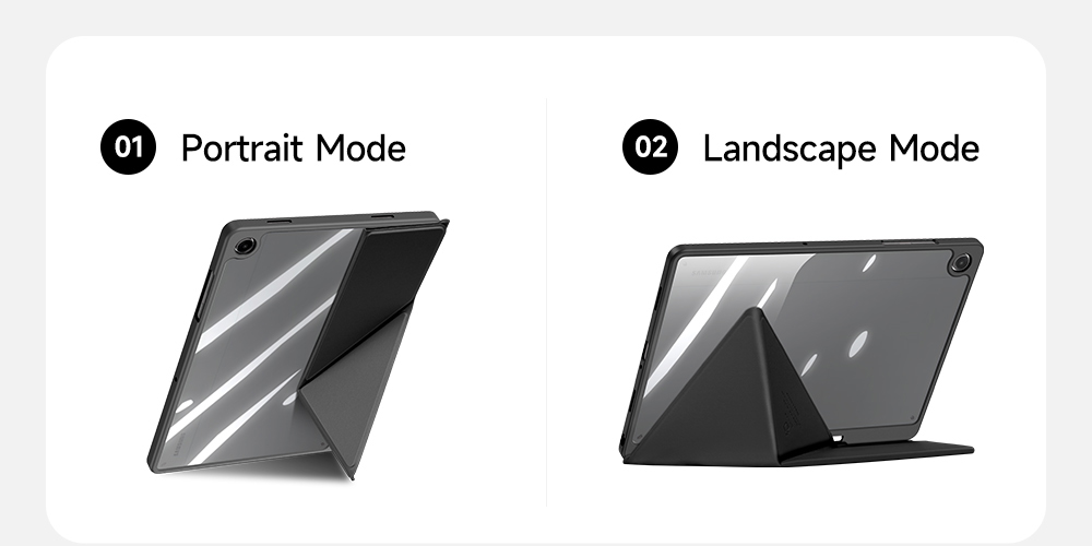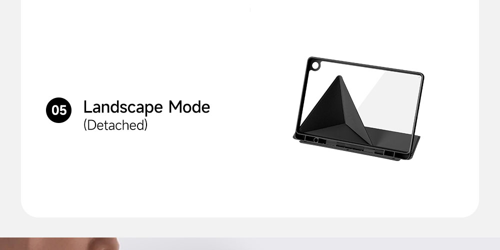 Creative front cover offers multiple stand angles to free your hands when viewing, browsing on the tablet. Clear back cover can be detached from the front cover and used independently, which is perfect for playing games on the tablet.
