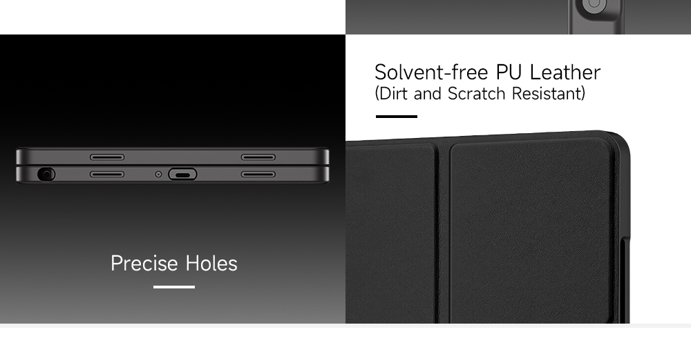 Made of premium solvent-free PU leather with clear plastic back cover.