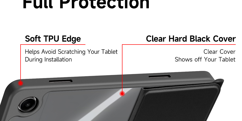 Protects your tablet body and screen against scratches, dirty, oil and shock. Buttons and earphone ports remain easily accessible.