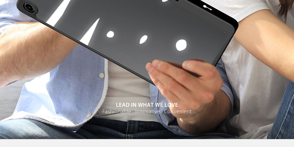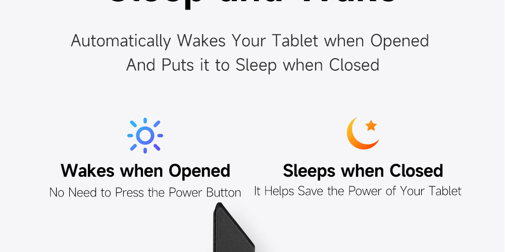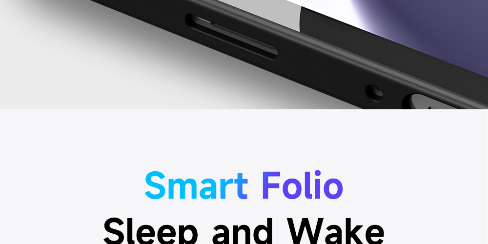 Smart folio offers wake/sleep function, it automatically wakes your tablet when opened and puts it to sleep when closed.