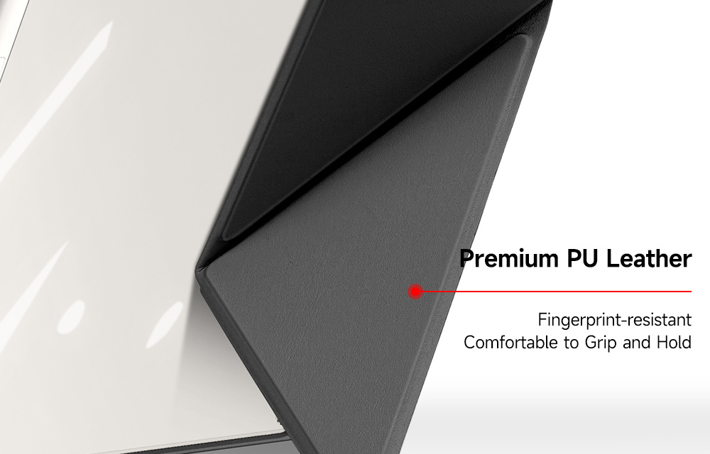 Made of premium solvent-free PU leather with clear plastic back cover.