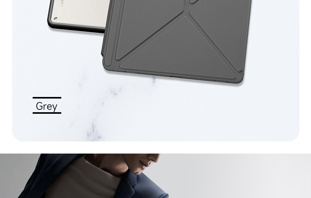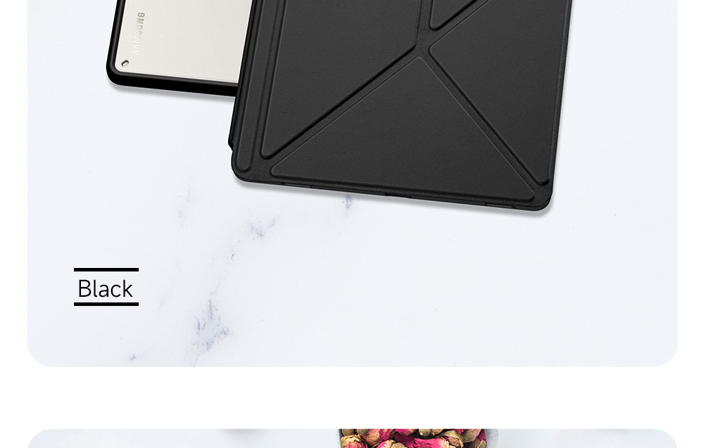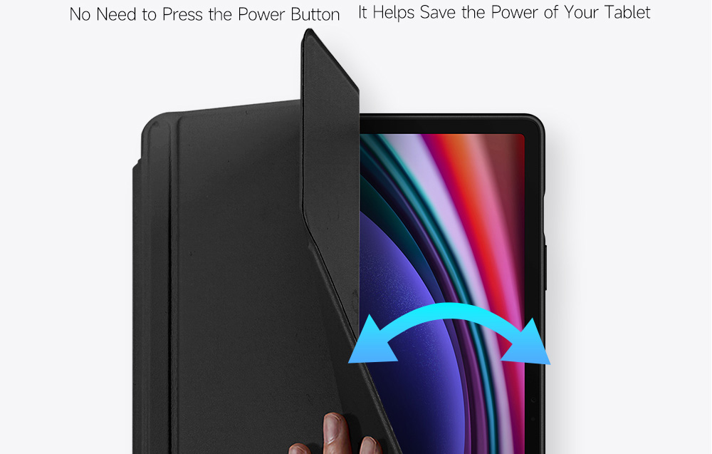 Smart folio offers wake/sleep function, it automatically wakes your tablet when opened and puts it to sleep when closed.