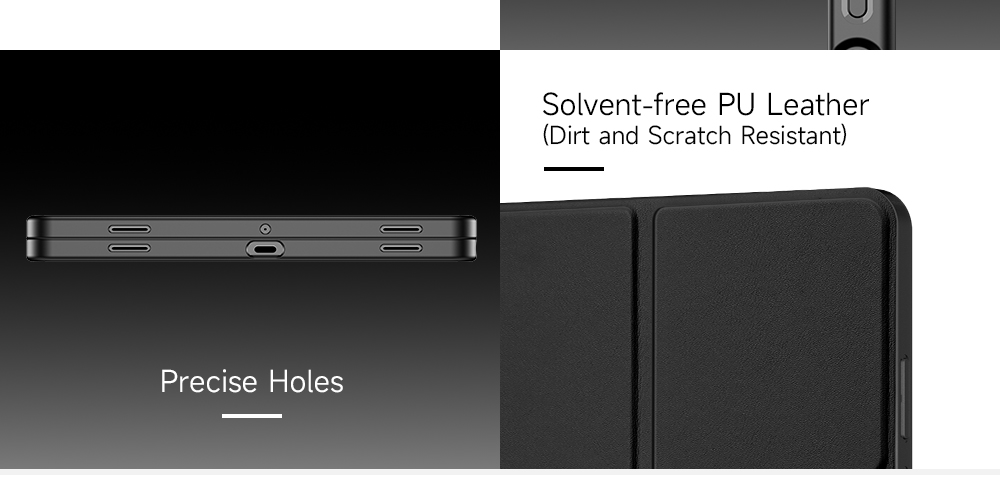 Made of premium solvent-free PU leather with clear plastic back cover.