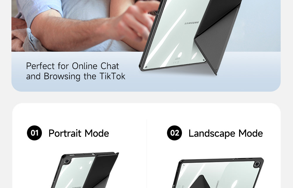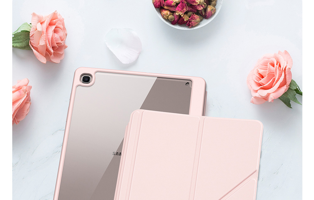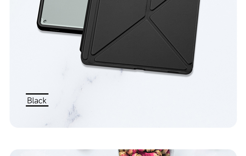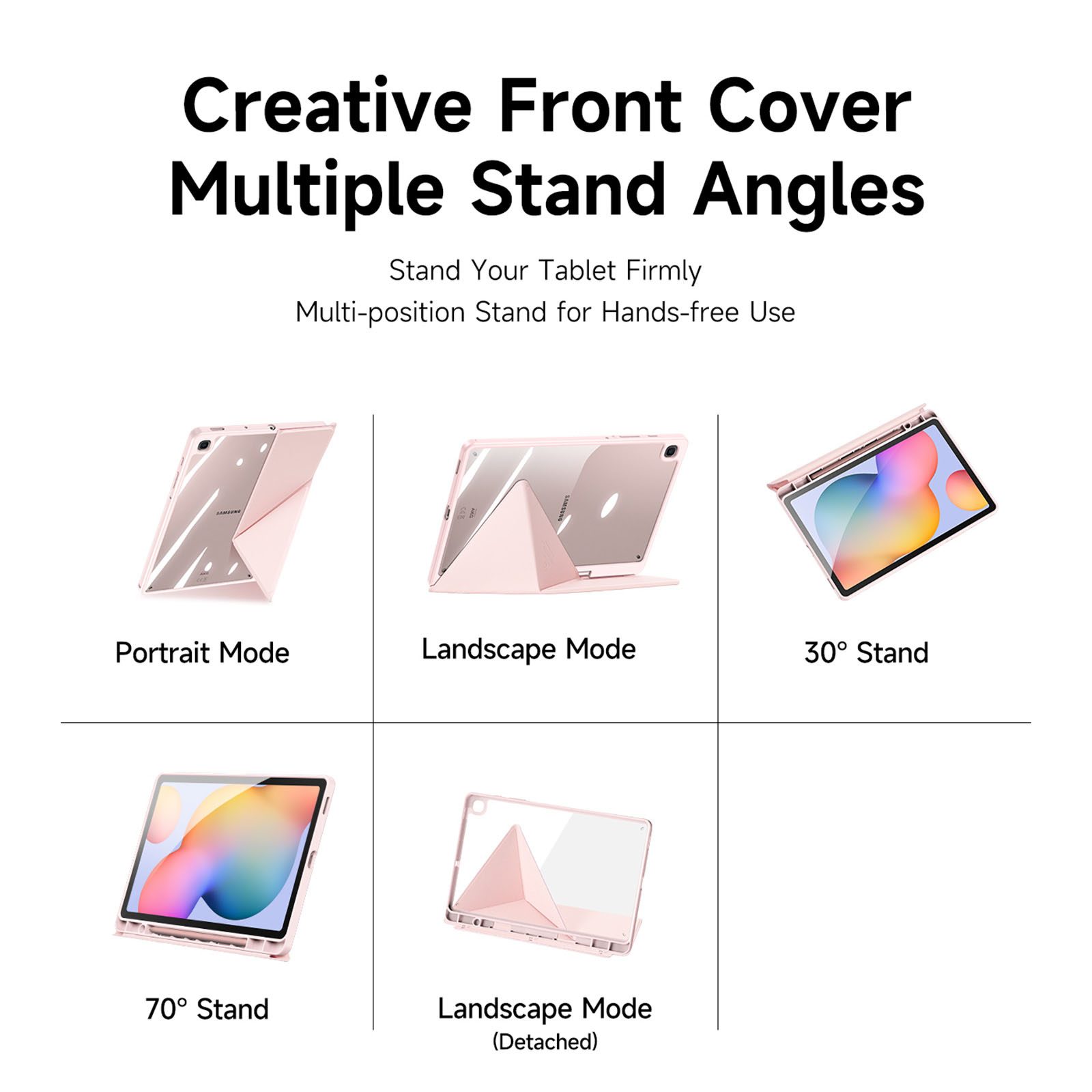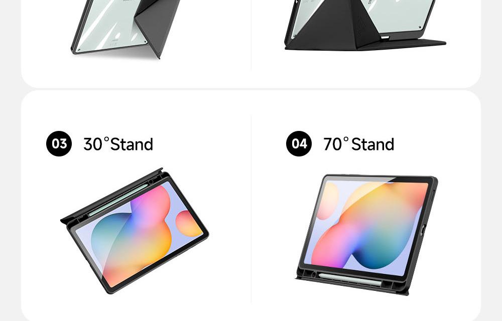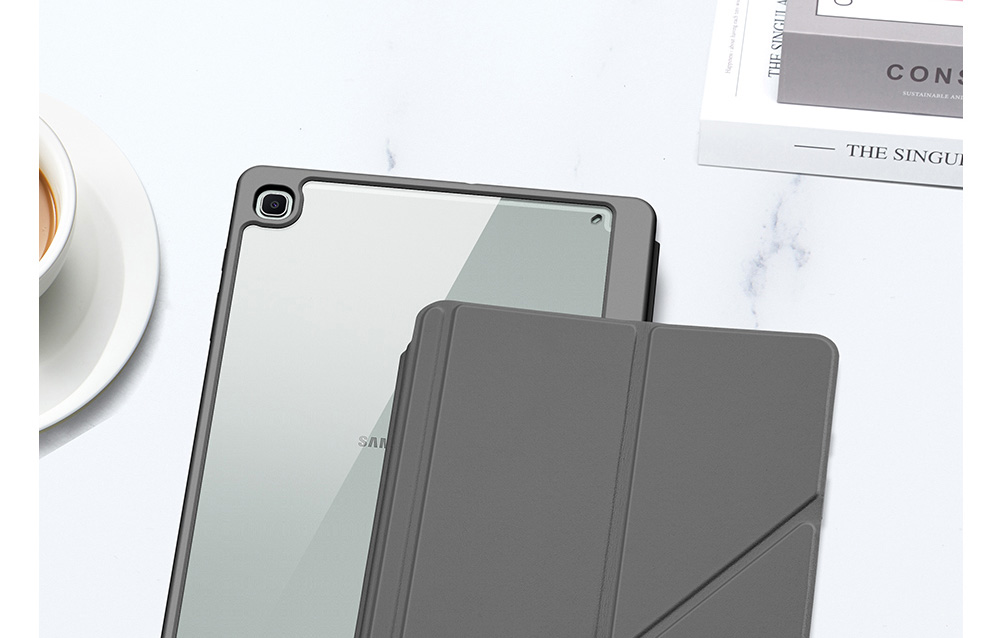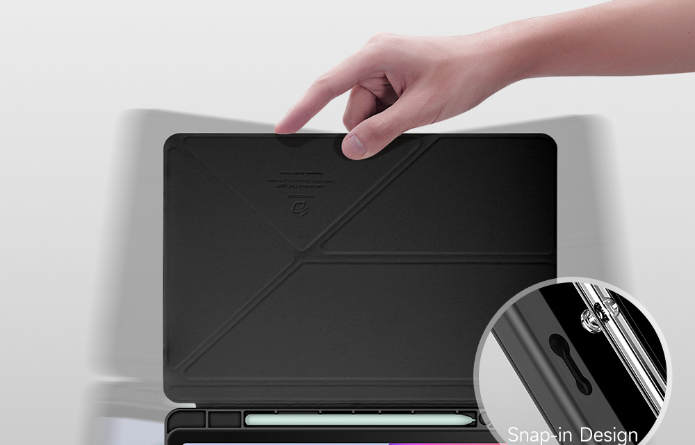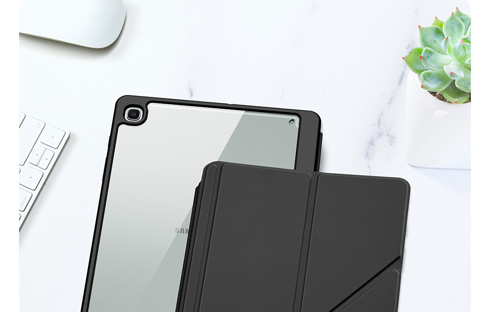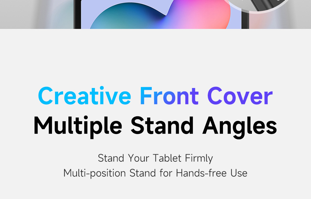 Creative front cover offers multiple stand angles to free your hands when viewing, browsing on the tablet. Clear back cover can be detached from the front cover and used independently, which is perfect for playing games on the tablet.