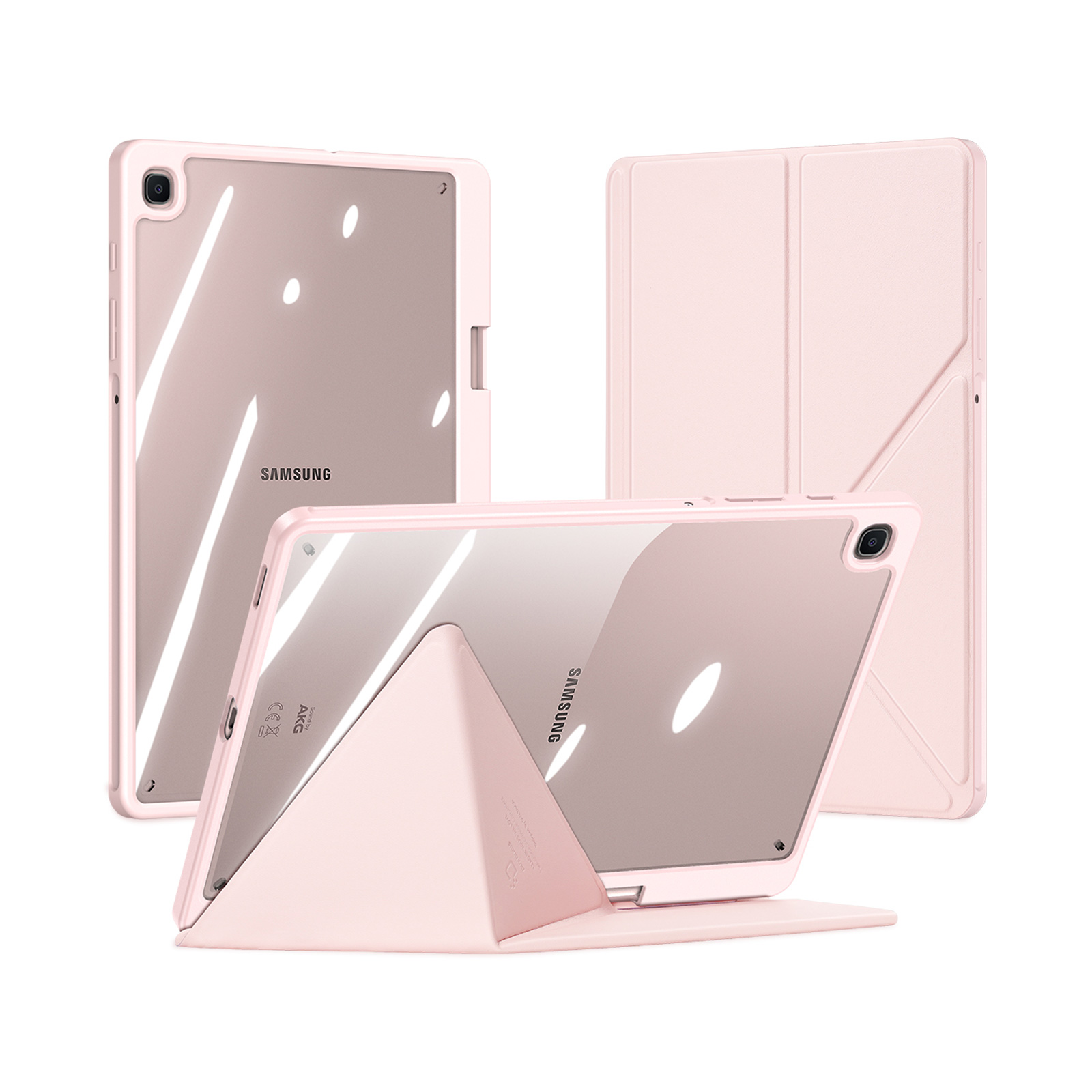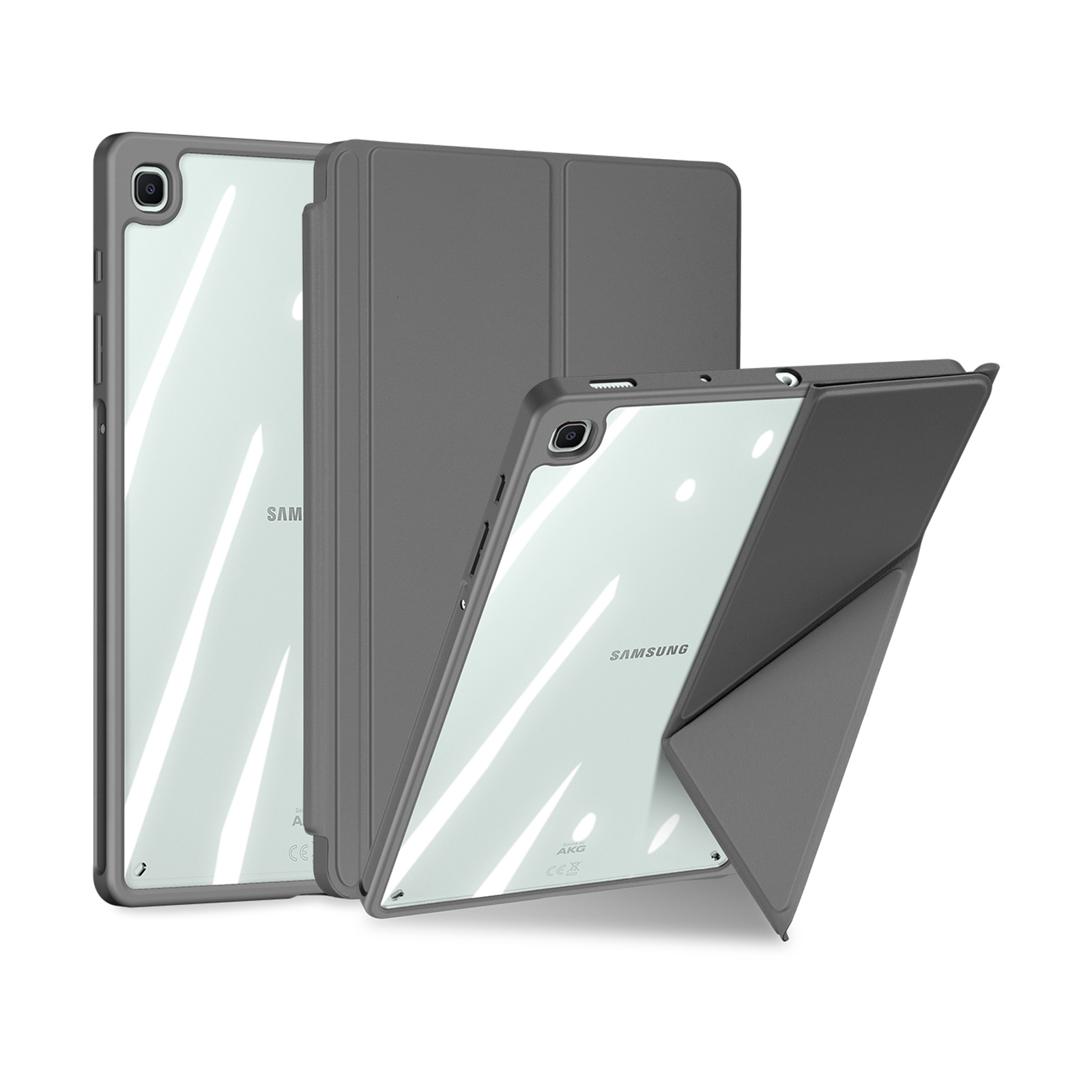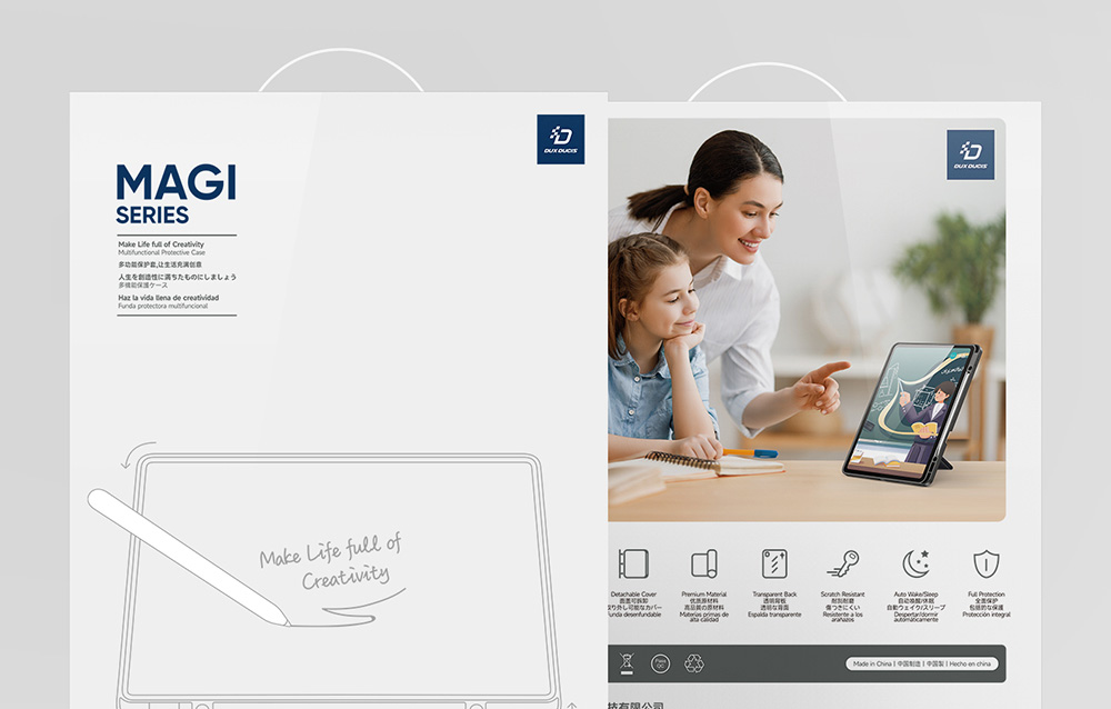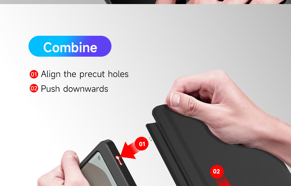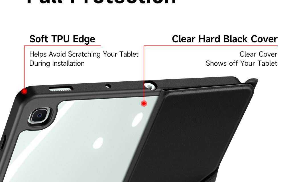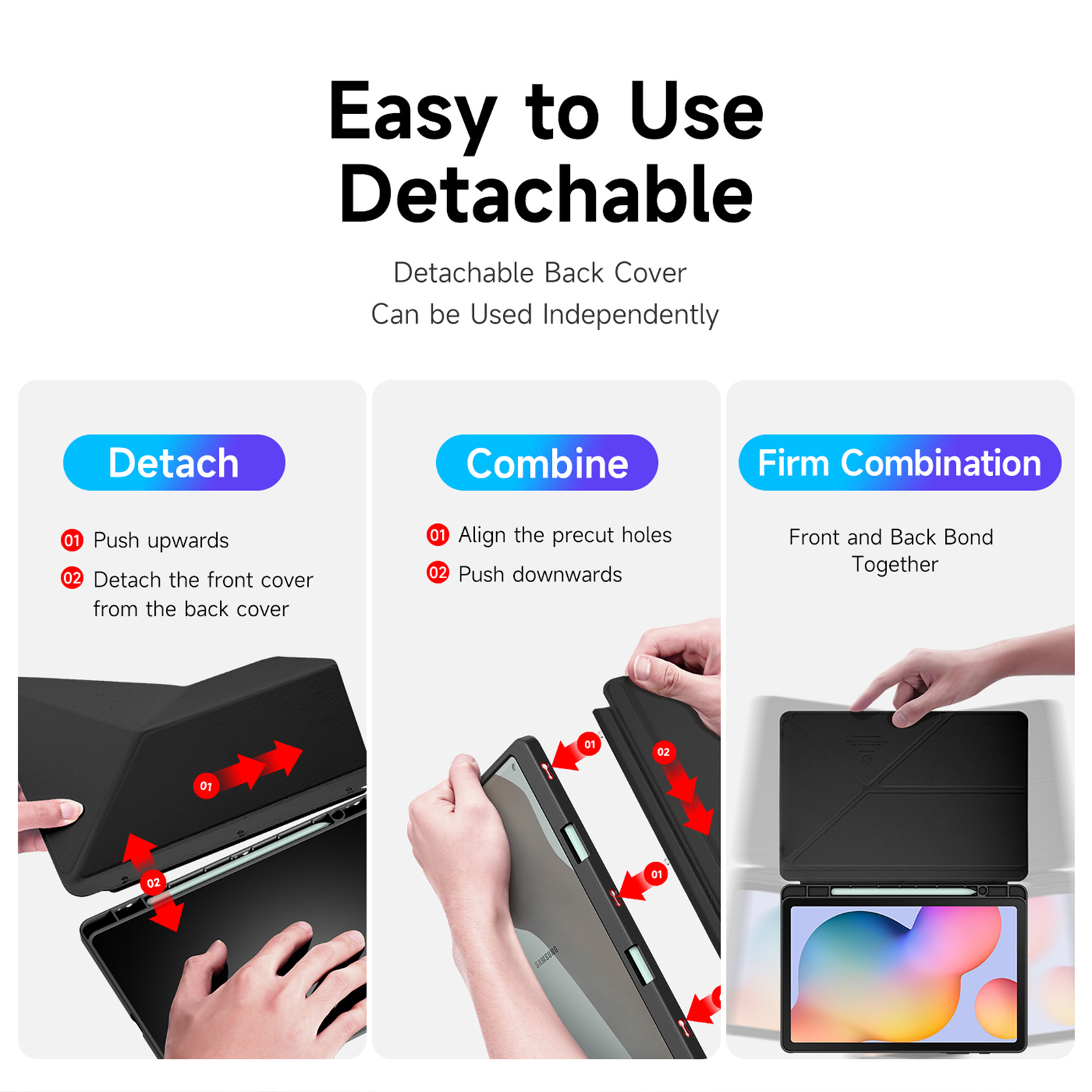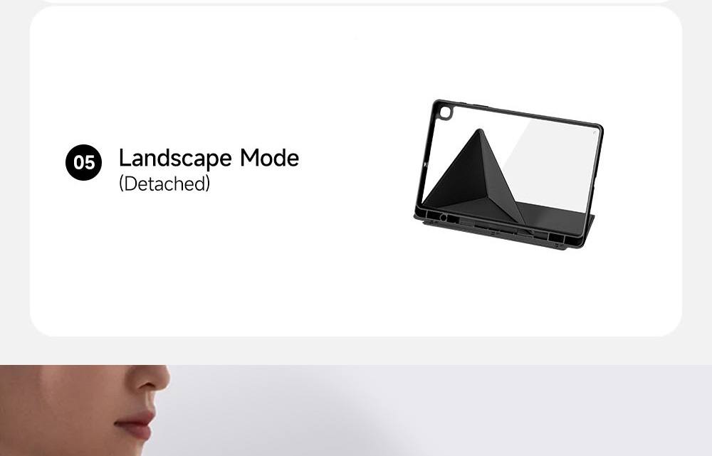 Creative front cover offers multiple stand angles to free your hands when viewing, browsing on the tablet. Clear back cover can be detached from the front cover and used independently, which is perfect for playing games on the tablet.