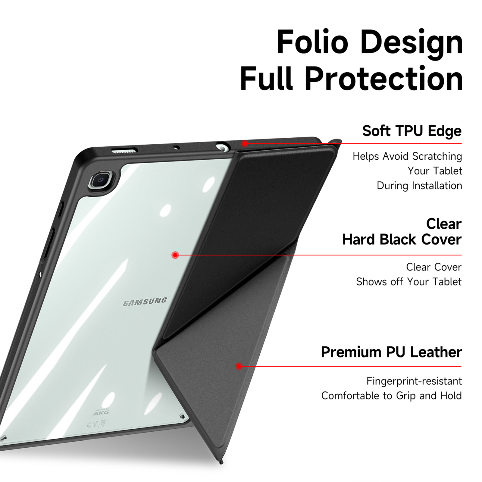 Made of premium solvent-free PU leather with clear plastic back cover.